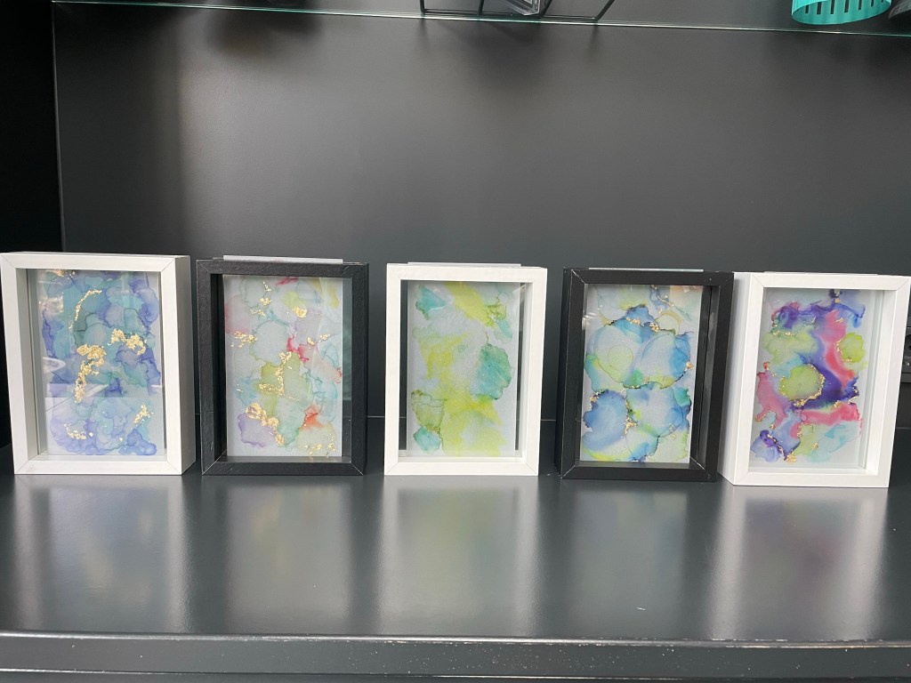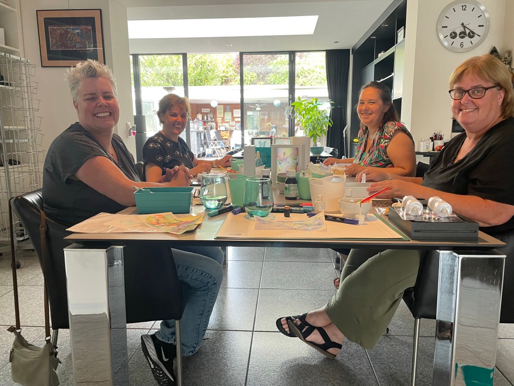 Na de lekkere en gezellige lunch gingen we creatief aan de gang. Ik had een leuk projectje bedacht met een foto lijstje, alcohol en goud. Hihi vieze vingers gegarandeerd. Nou de dames werden er stil van:in opperste concentratie werden er de mooiste creaties gemaakt. Deze heb ik voor jullie op de foto gezet: trots op het eindresultaat en een mooie herinnering aan een dag met een gouden randje! Lieve Patricia, Monique Gerrie, en Danielle dank jullie wel voor jullie vriendschap en voor deze SUper dag. Dankzij Stampin’Up hebben we elkaar gevonden! En nu wil ik jullie nooit meer kwijt.