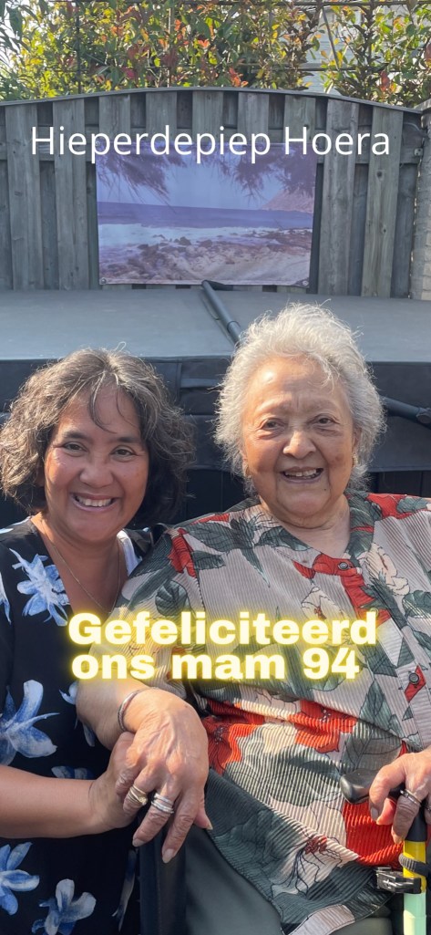 En vandaag is mijn moeder jarig: 94 is ze geworden. Klein maar dapper. En hoewel ouderdom met gebreken komt woont ze nog steeds zelfstandig. Wij hadden liever gezien dat ze naar een aanleunwoning ging verhuizen maar ze heeft toch besloten dat niet te doen. Vanmiddag dus daar op bezoek maar nu eerst wat lekkere hapjes voor haar halen bij de Toko.