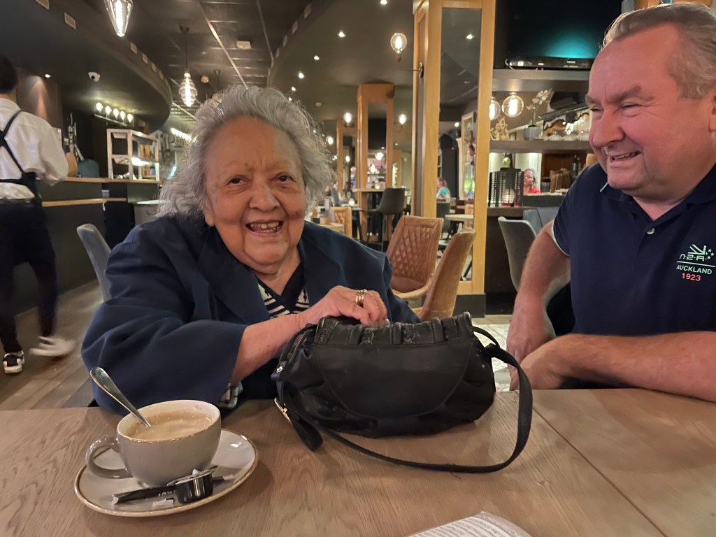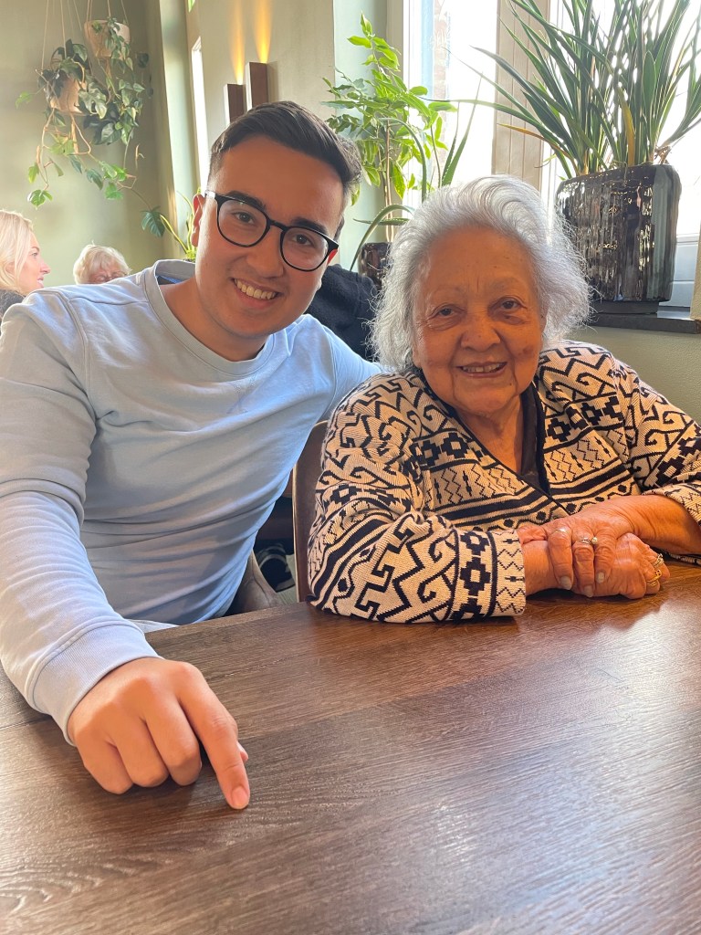 Nick heeft ook tijdens de lunch goed voor zijn omaatje gezorgd. Die lekker smulde van haar Carpaccio. En natuurlijk als toetje de Cheese cake!