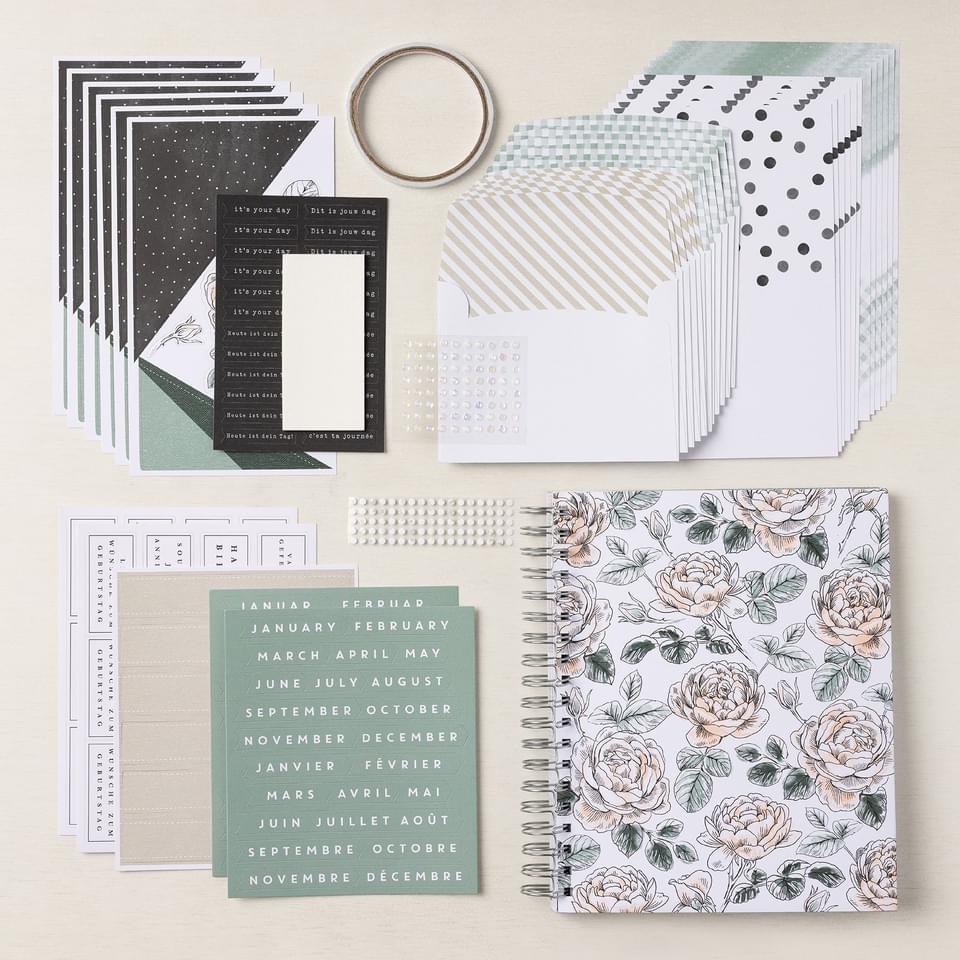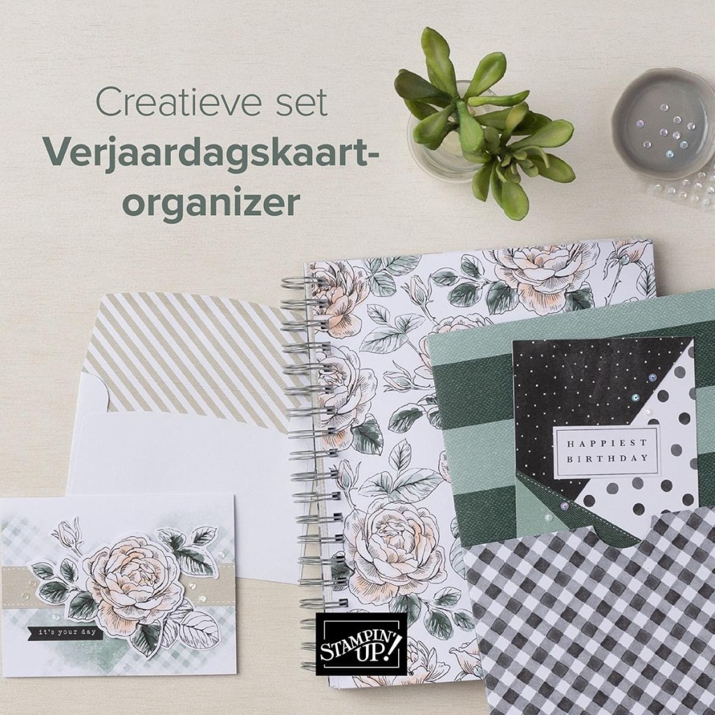 De creatieve set Verjaardagskaartorganizer bevat een handige maandplanner en twaalf kaarten die je zelf naar smaak aan kan passen om het hele jaar door verjaardagswensen te versturen!