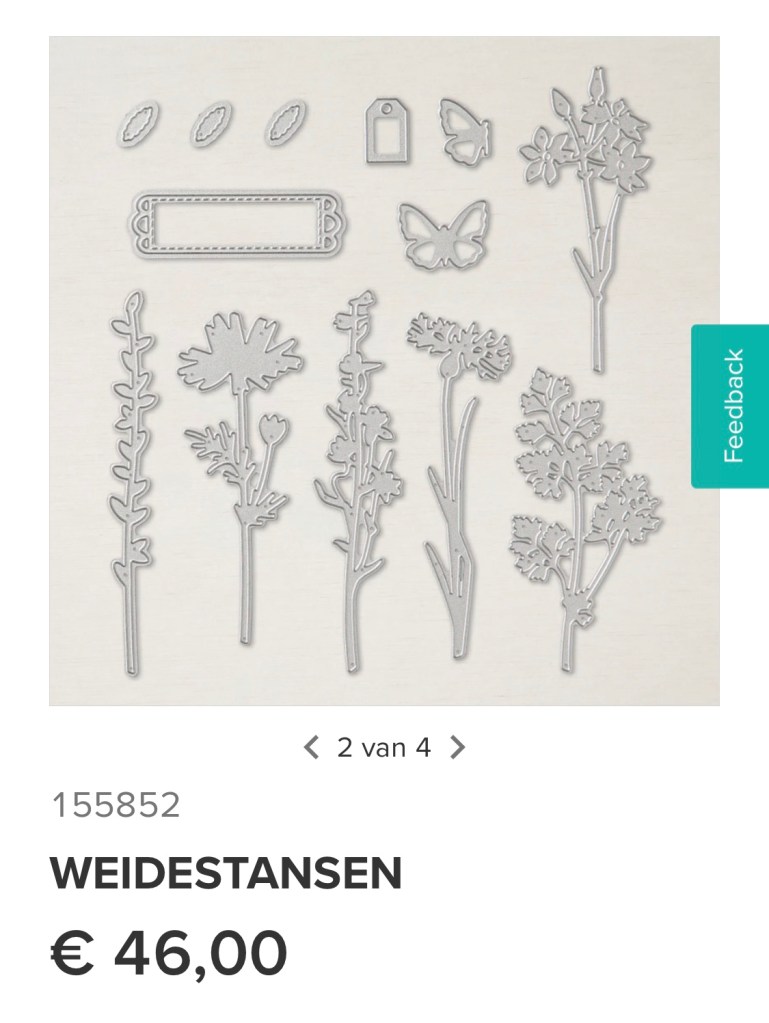 Vandaag is de koopjeshoek aangevuld met veel mooie aanbiedingen. Wil je iets hebben geef het dan snel door want Op is Op. Wil je de mooie stempelset Quiet Meadow en de bijbehorende Weidestansen hebben, bestel ik die graag voor jou. Stuur me maar een berichtje.