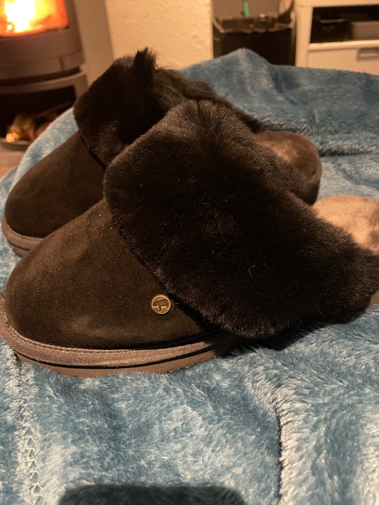 Zo blij dat ik nieuwe sloffen heb want deze zijn heerlijk warm en lopen lekker. Goede tip van schoondochter Bibi. Die heeft deze al jaren en vroeg nu nieuwe aan ons voor Sinterklaas.