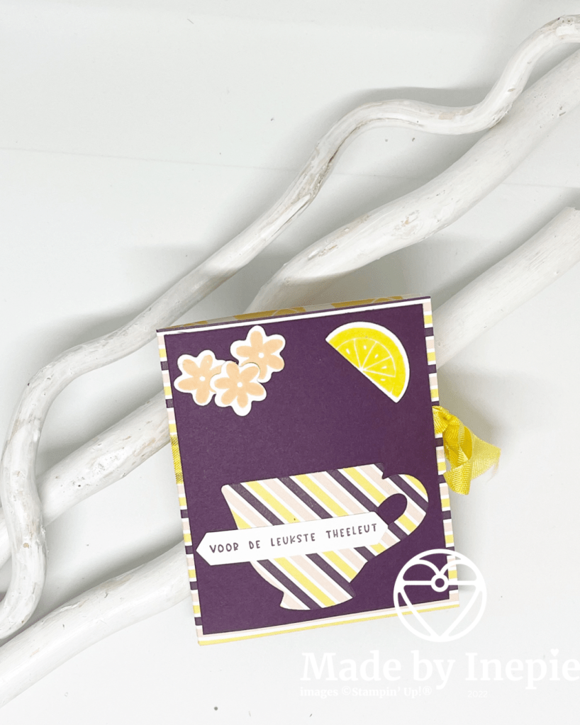 Dit schattige mapje heb ik gezien bij Pootles Papercraft. Heel snel heb je een cadeau mapje voor 2 zakjes thee.
