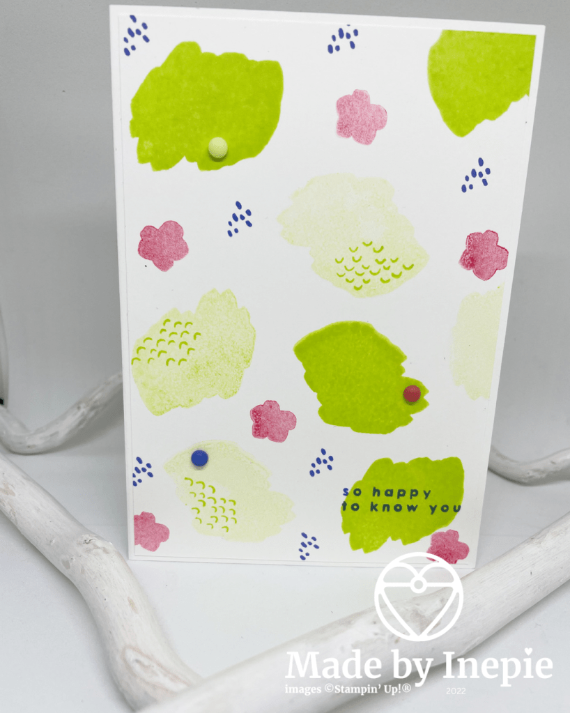 Ik heb gestempeld met Parakeet Party op volle sterkte en 1 keer afgestempeld. En Sweet Sorbet en Orchid Oasis allemaal 2022-2024 In Color kleuren.