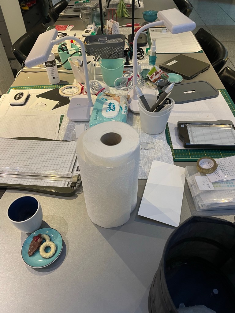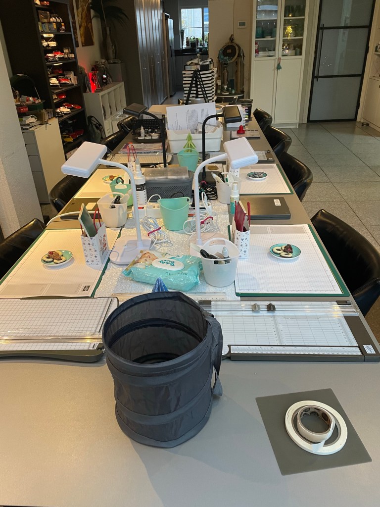 Vanochtend was het eindelijk zover: mijn eerste Kerst en Kaart evenement. Het begon om 10.30 uur maar om 10.00 stonden al twee enthousiaste dames aan de deur hihi. Die zijn nog even een rondje gaan wandelen want ik kwam net onder de douche uit. De tafels stonden al klaar alleen Willem moest nog even wat boodschappen doen.