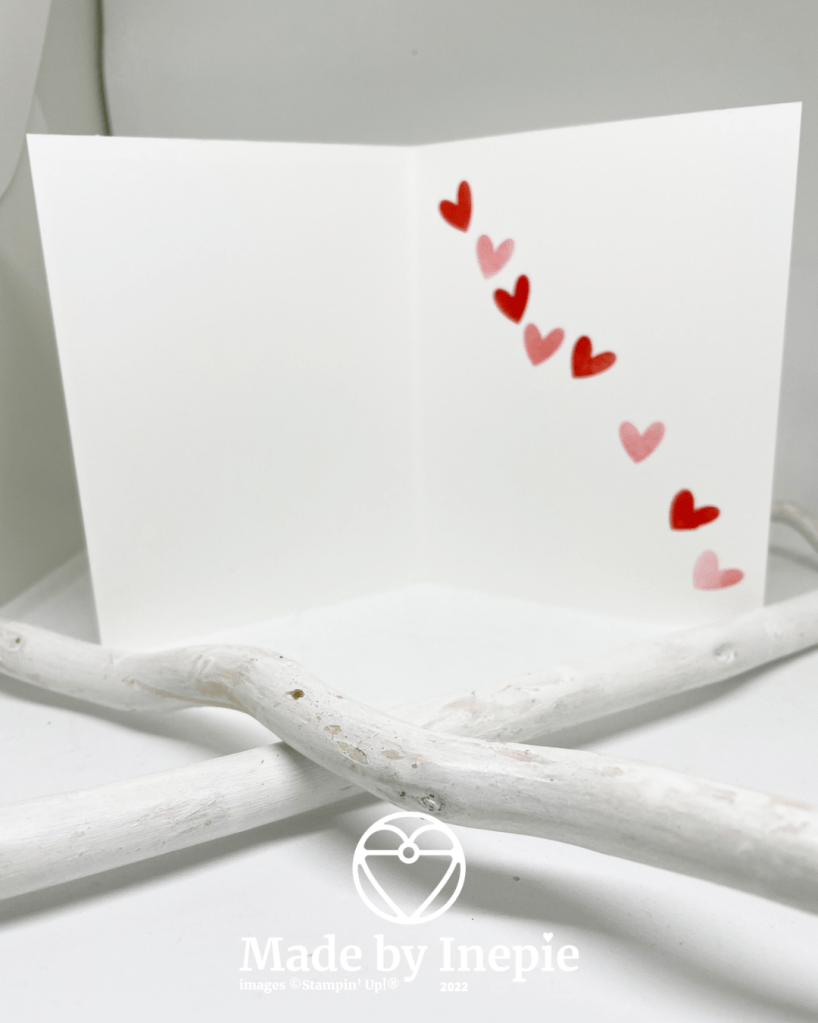 In de binnenkant van de kaart heb ik hartjes gestempeld omdat de tekst was Sending Love. Ik weet al naar wie deze gaat.