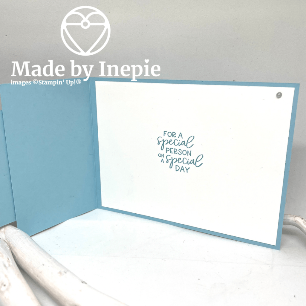 De binnenkant heb ik gestempeld met een tekst uit de mooie stempelset Framed Florets. Deze bundel is echt een aanrader. Gisteren twee sets verkocht want bij aanschaf van deze bundel mag je meteen een gratis product uit kiezen en de uiltjes zijn zeer gewild. Wil jij dit ook? Geef dan snel je bestelling aan mij door. Sale-A-Bration duurt maar tot 28 februari.