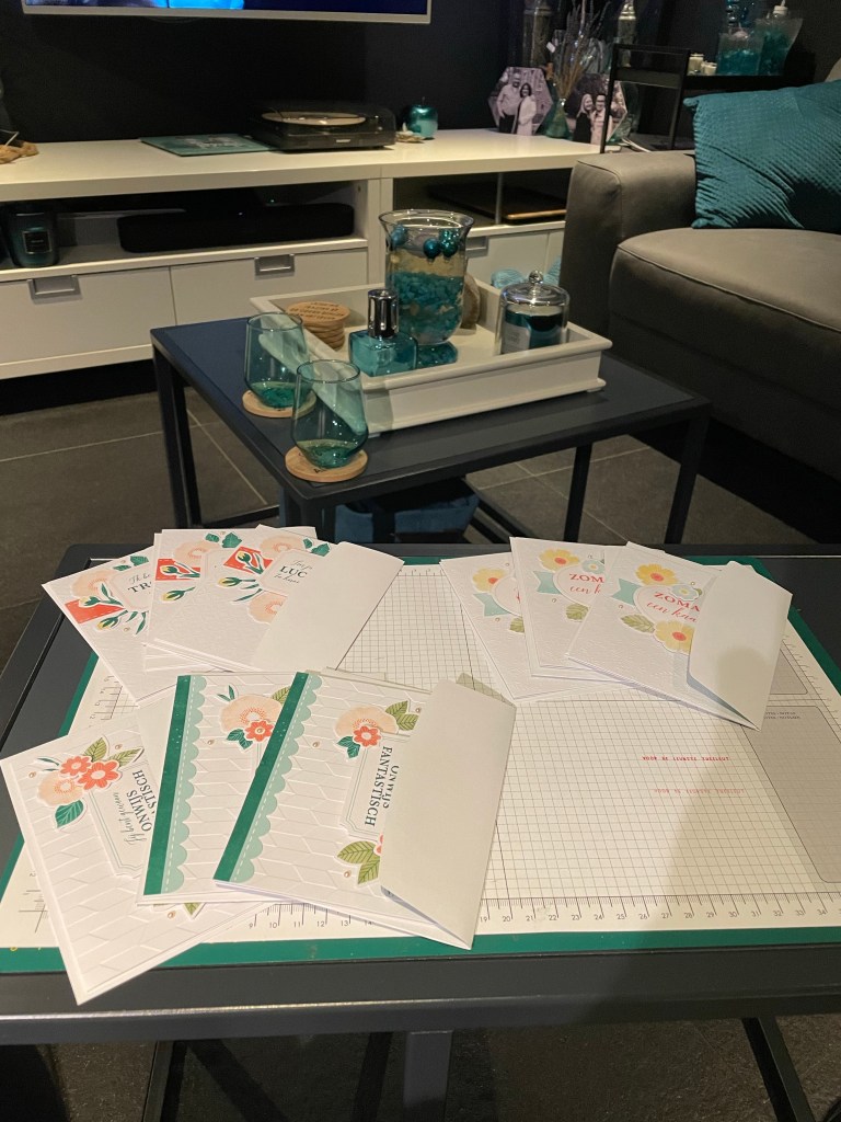 Gisteravond bij de tv lekker zitten knutselen met de Nourish & Flourish Kit. Ik had kaarten nodig om op voorraad te hebben om te versturen en dan zijn kits ideaal. Ik heb nu ook de nieuwe Bedankje kit besteld want die vind ik ook prachtig en altijd fijn om bedank kaartjes op voorraad te hebben.