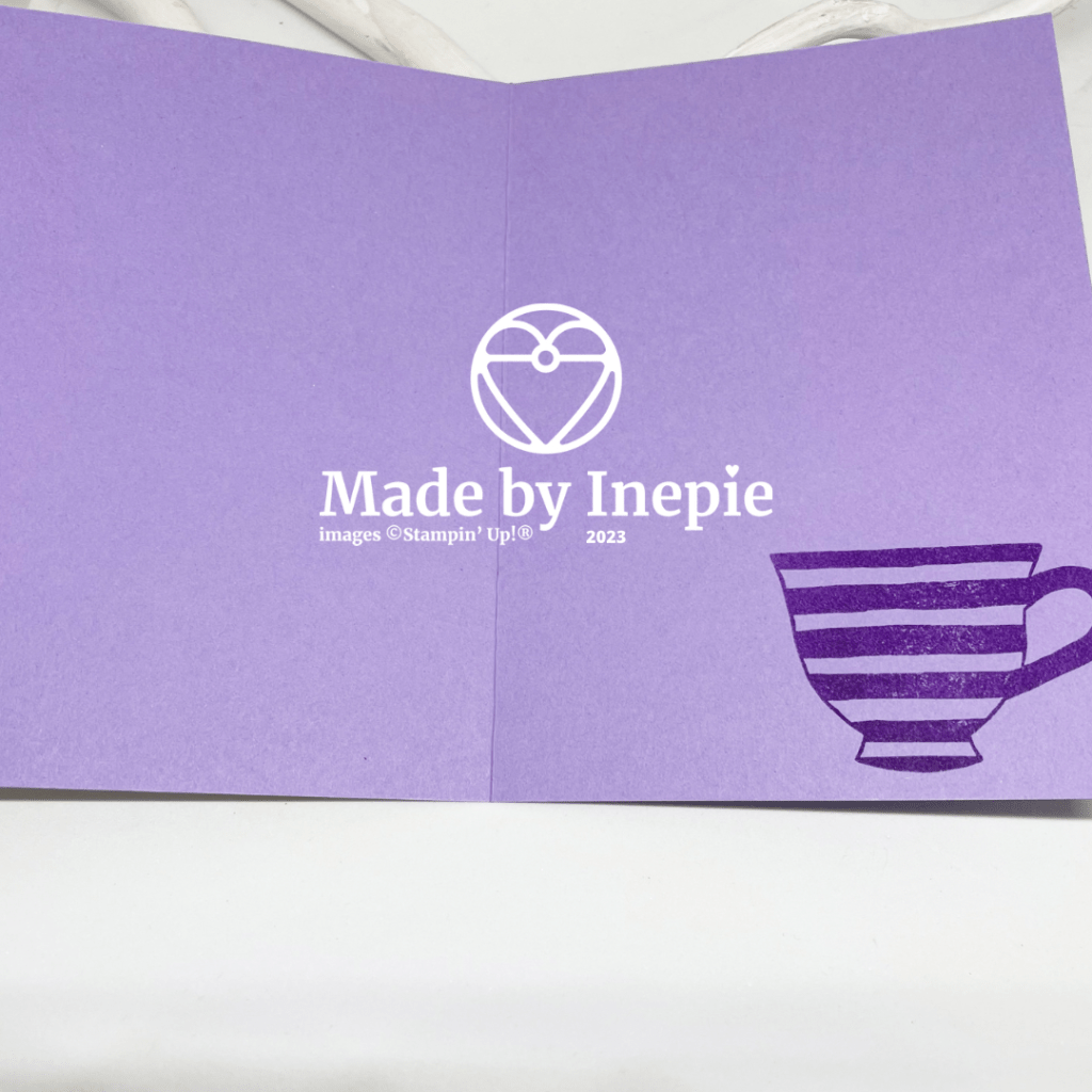 En de binnenkant leeg gehouden zo kan het een verjaardags kaart of Beterschapskaart worden. Alleen een theekopje aan de binnenkant gestempeld.