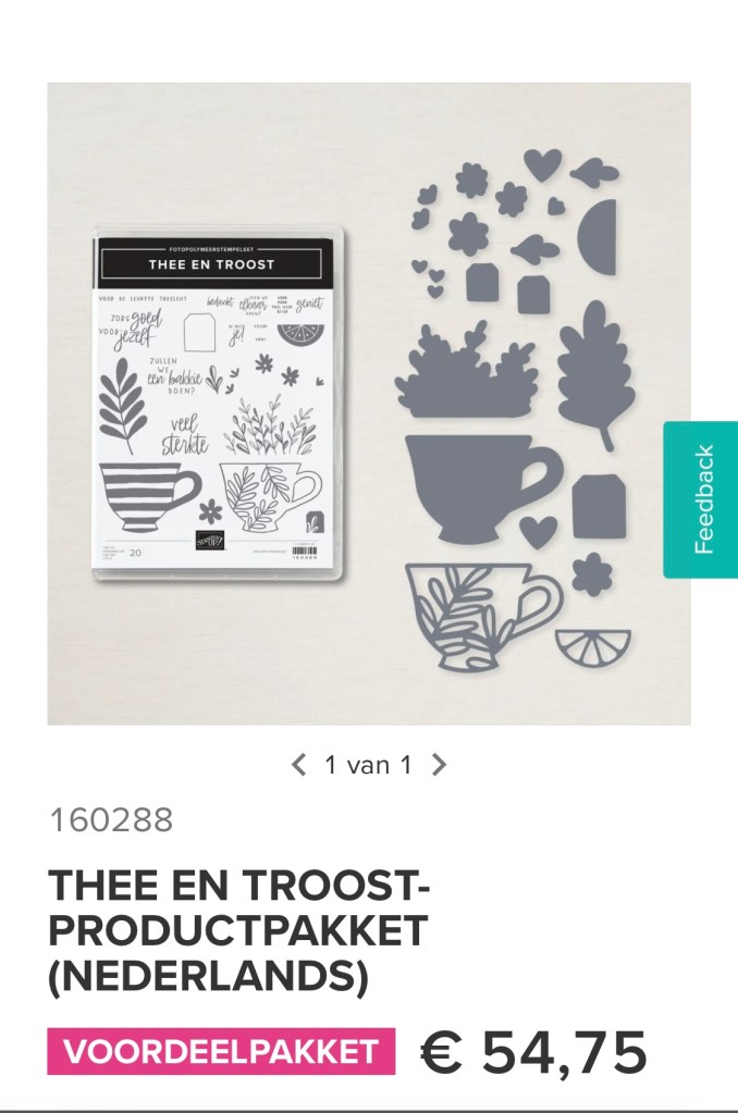 Leuk toch zo’ n restjes kaart. Echt een leuke bundel ook de Thee en Troost set en zo fijn in het Nederlands. En koop je er bijvoorbeeld een flesje lijm bij dan zit je over de €60,00 en mag je een gratis product uit de Sale-A-Bration folder uitzoeken.