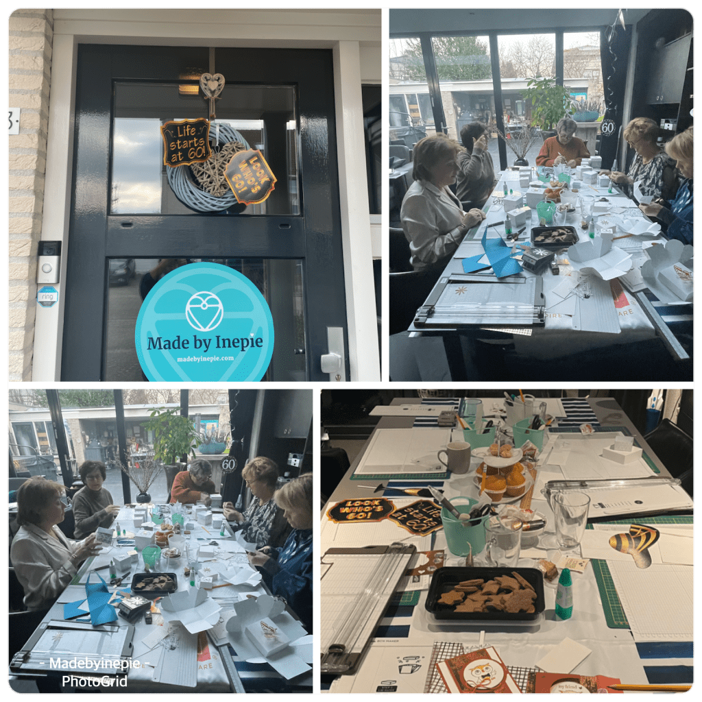 Gisteren was een hele drukke dag. Om 12.00 uur begon onze videohop en dan is het toch even checken of de hop loopt. Willem moest naar een uitvaart van een hockey maat. Normaal zou ik meegegaan zijn maar al maanden geleden had ik een workshop ingepland. Mijn lieve vriendin Aggie was in november 60 geworden en een andere vriendinnen groep had mij benaderd voor een Surprise workshop. Dus afzeggen was geen optie.