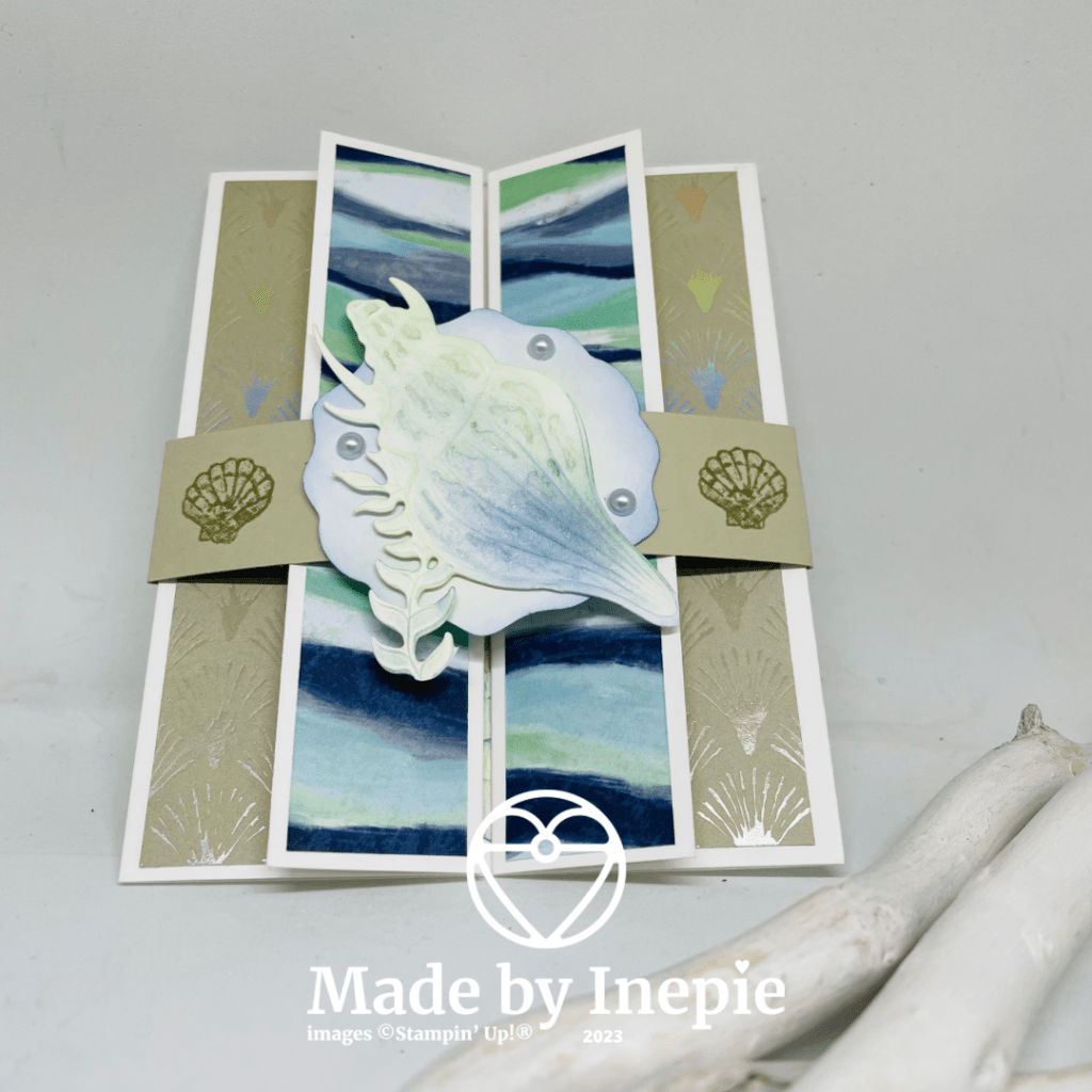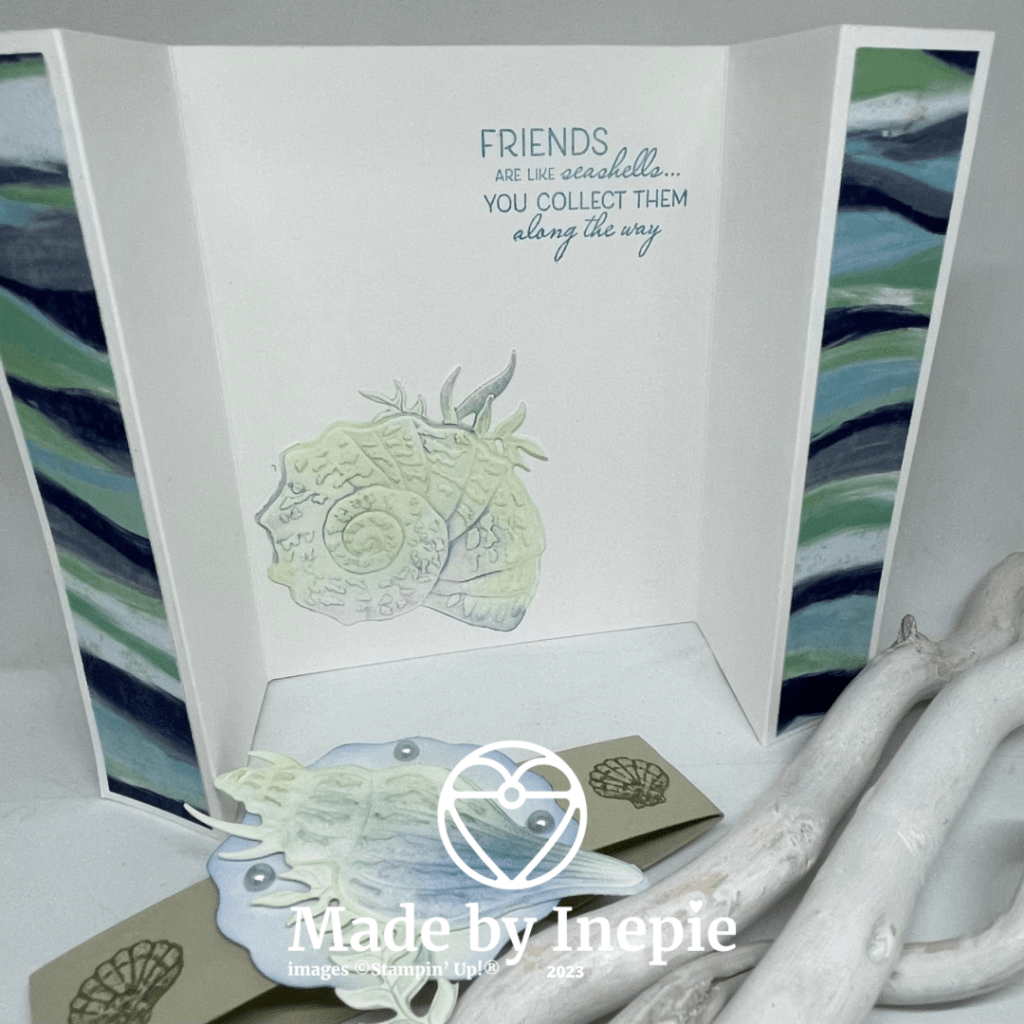 In de binnenkant heb ik ook een schelp geplakt en de mooie tekst komt uit de stempelset.