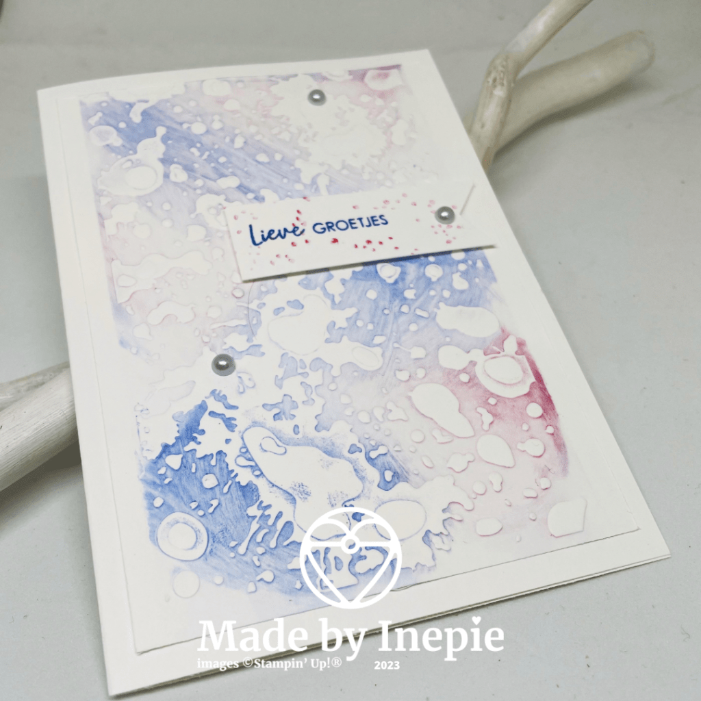 Deze techniek heb ik vanmiddag ook aan de dames geleerd die bij Koffie en Kaart aanwezig waren. Zij vonden het ook geweldig. Ik had deze kaart voorbereid en ze vonden hem zo mooi dat ze hem nagemaakt hebben.