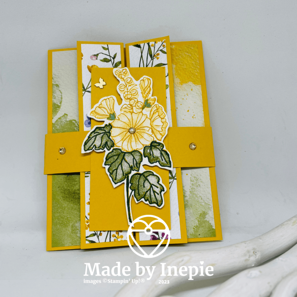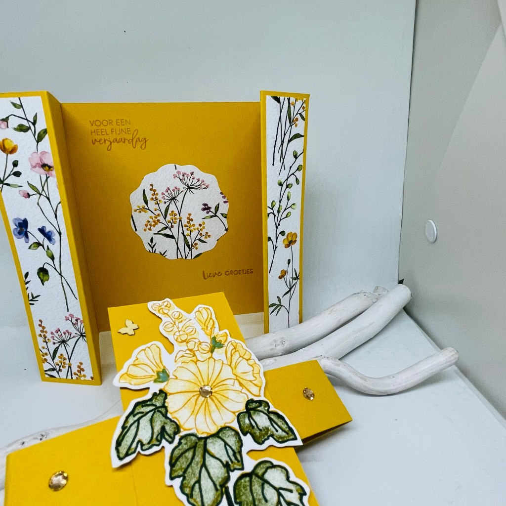 Ik heb het Dainty Flowers Dsp gebruikt die je tijdens Sale-A-Bration gratis mag uitzoeken bij een bestelling van €60,00. Met deze funfold kun je mooi het Dsp laten zien.