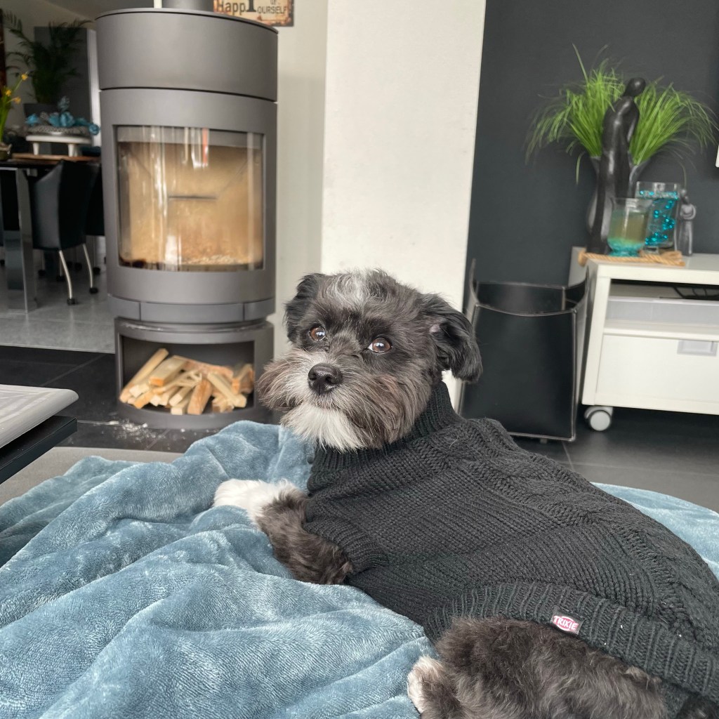 Zo genieten weer. Hij vond het leuk om naar de vallende sneeuw vlokken te kijken. En kwam ook gezellig bij mij liggen.