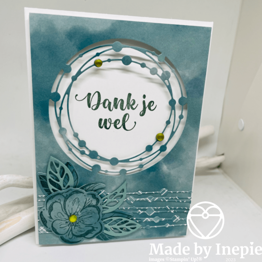 Deze keer heb ik ook de bijbehorende stansen gebruikt. Ik viel meteen voor de cirkel stans en de dunne strookjes stans. En hoe mooi zijn de open blaadjes.