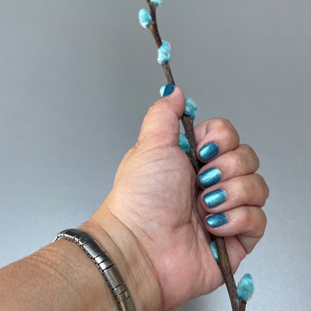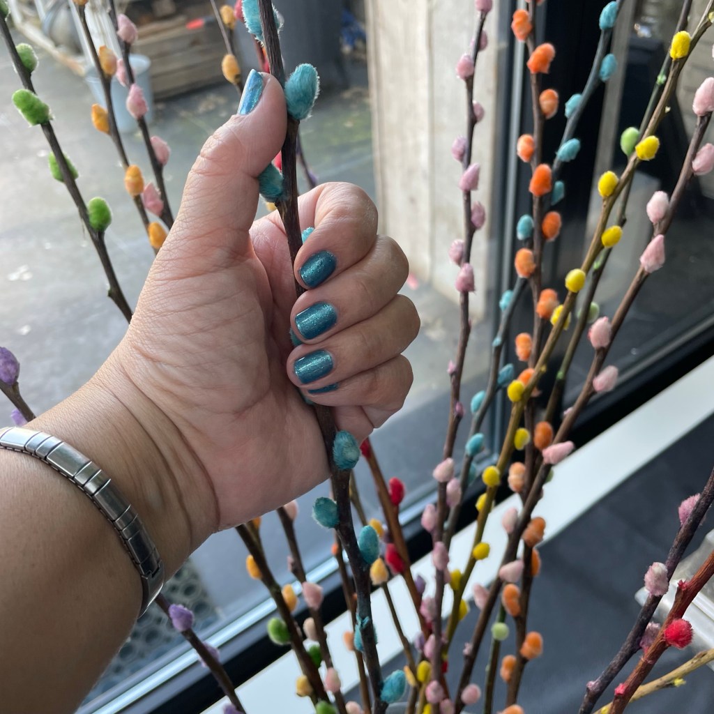 En met een mooi glittertje. De tak met gekleurde katjes had ik van Wendy Verharen gekregen voor mijn verjaardag. Een prachtige bos met allemaal gekleurde katjes: zo mooi!