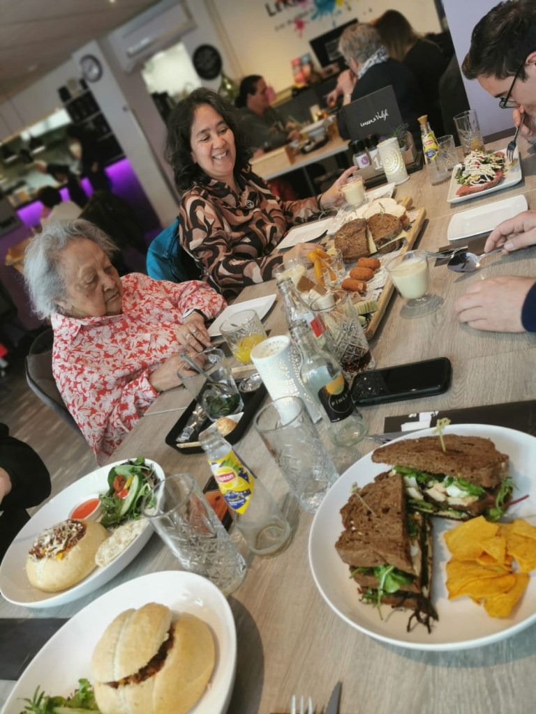 Daarna moesten we nog opschieten want we hadden om 13.00 gereserveerd bij Lekker en Vrolijk . Waar onze Lara werkt.