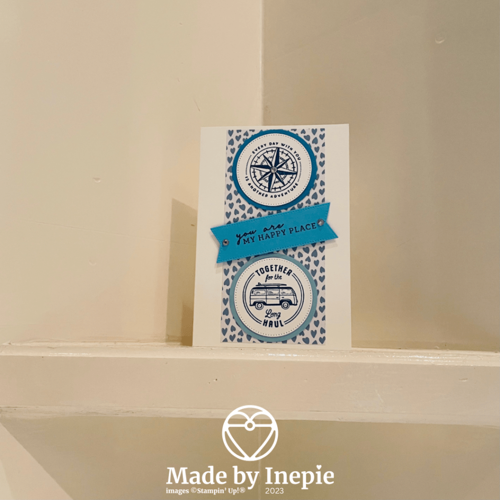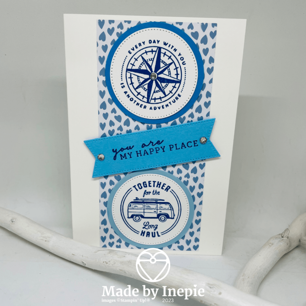 Vandaag zijn wij 15 jaar samen. En werd ik wakker gezongen door mijn vriendje: kom uit de bedstee mijn liefste 🎵🎵🎵. Gisteravond na twaalf uur kreeg hij zijn kaart. Hij vond hem erg mooi. Ik ben aan de slag gegaan met de mooie stempelset: He’s all that. Wij zijn beide weg van vw busjes en het kompas is de aanwijzing voor alle mooie plekken die we samen bezocht hebben. De tekst komt uit een stempelset waar ik zo gauw nu niet op kan komen.