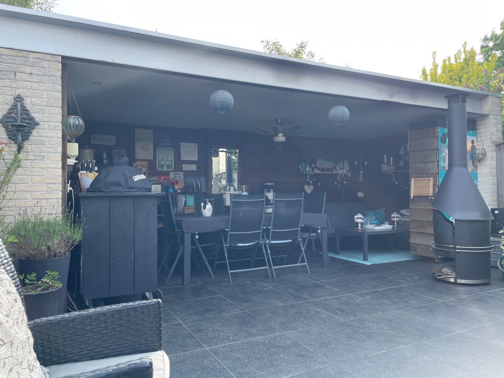 En Willem heeft zelfs de deur en het raam van de schuur geschilderd en mijn dienblad. Ik zit nu heerlijk in de tuin te genieten. Gisteravond waren twee van onze liefste vrienden op bezoek geweest en hebben we tot laat buiten gezeten met het haardje aan: genieten!