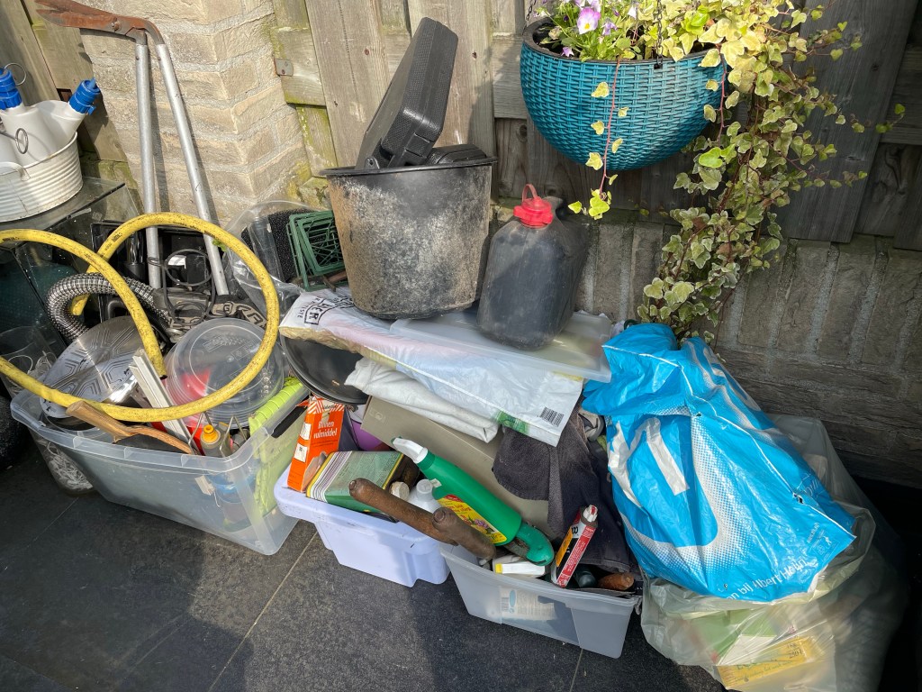Alles uitgesorteerd, gepoetst en teruggezet met labels op de dozen want de jaren gaan tellen en onze geheugens worden minder. Het gangetje staat vol met zooi wat weg moet en in de garage staat een stapel wat naar het Goed kan en een tweede leven krijgt.