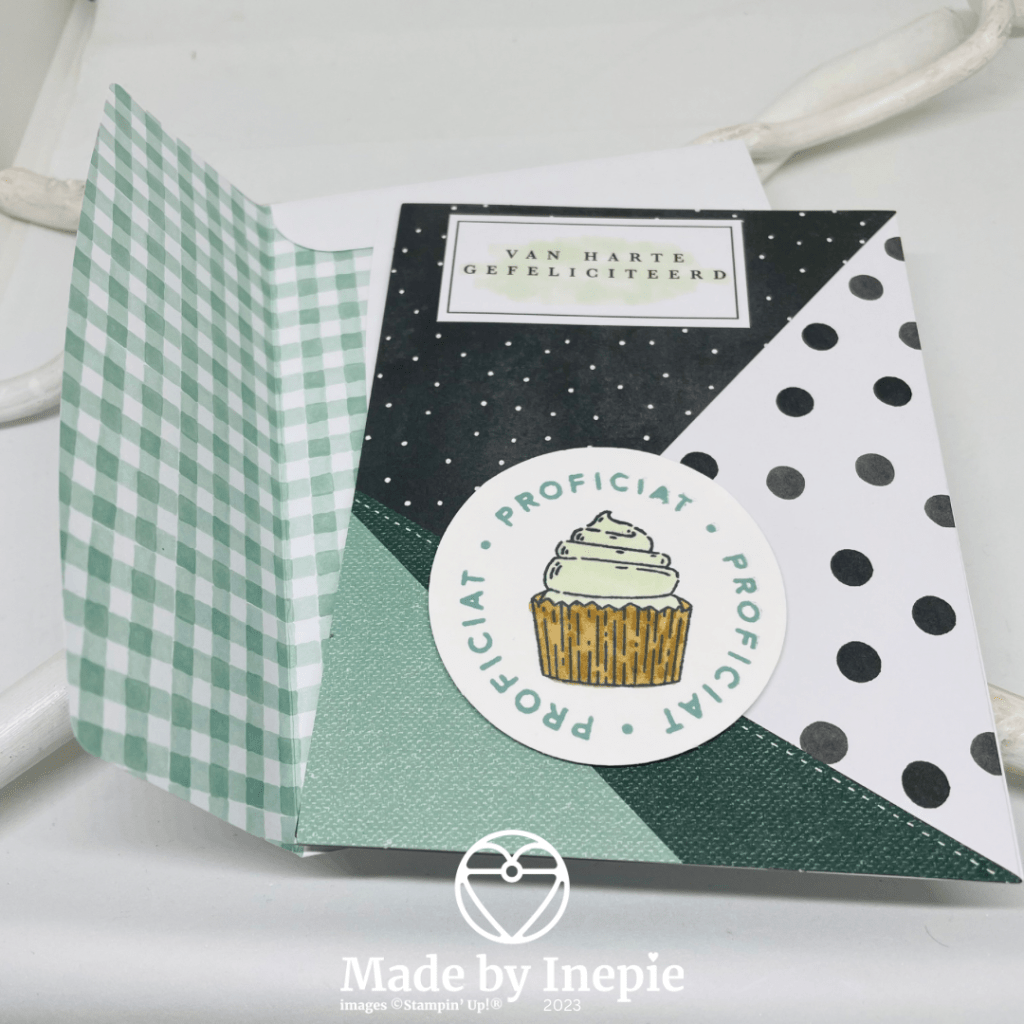 De binnenkant heb ik bestempeld met teksten uit de stempelset Een rondje gelukwensen. En bij de Verjaardagskaartenorganizer zitten ook bijpassende enveloppen. Super leuk dus. Beide producten kun je bij mij bestellen of kopen in mijn onlineshop.
