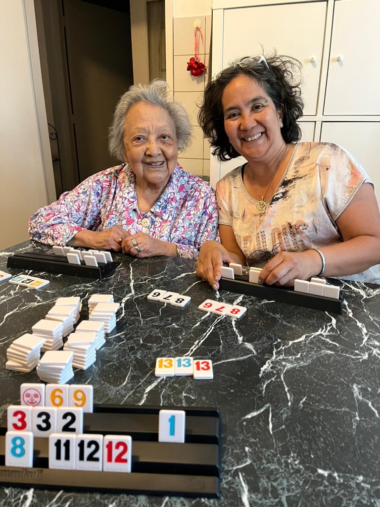 Nog even door de Jumbo gewandeld want het winkelcentrum is vernieuwd dus vond mama dat leuk om alles te bekijken. Thuis heb ik haar nagels geknipt en gevijld, de post bekeken en toen hebben we samen Rummikub gespeeld. Ze vond het geweldig dat ze dit nu weer kon omdat ik een Xl versie heb gekocht. Zo genoten en gelachen tijdens het spelen. Ze kijkt nu al uit naar de volgende keer. Wij gaan nu voortaan iedere dinsdag avond naar haar toe. Heerlijk dat dit nog kan, daar had ik vorige maand echt mijn twijfels over. Toen ging het zo slecht met haar. Dus genieten van deze extra tijd samen.