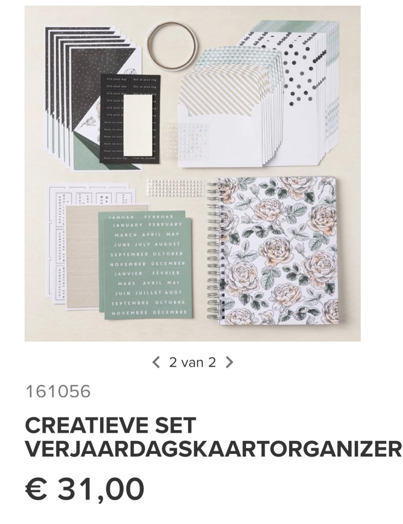 Deze leuke kaart had ik zo gemaakt. De basis is namelijk een kaart uit de Verjaardagskaartenorganizer kit. Echt een geweldige kit met mooie kaarten en een geweldig album om ze erin te bewaren en per maand de jarigen op te schrijven.