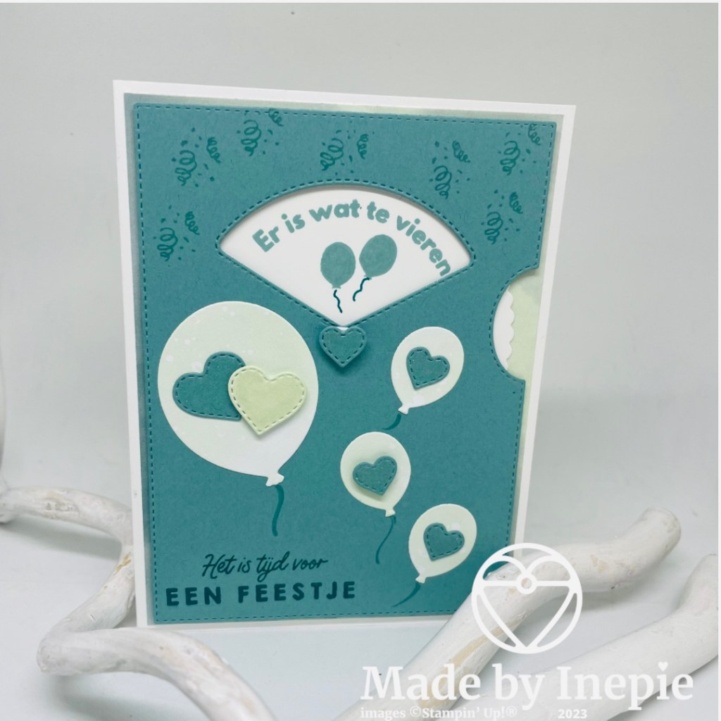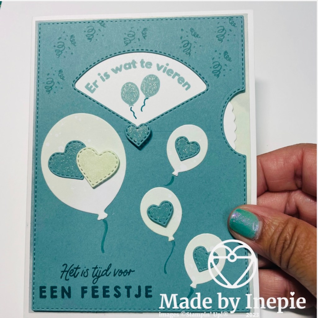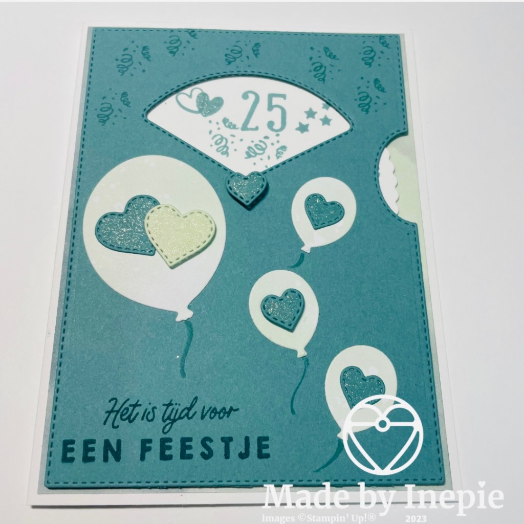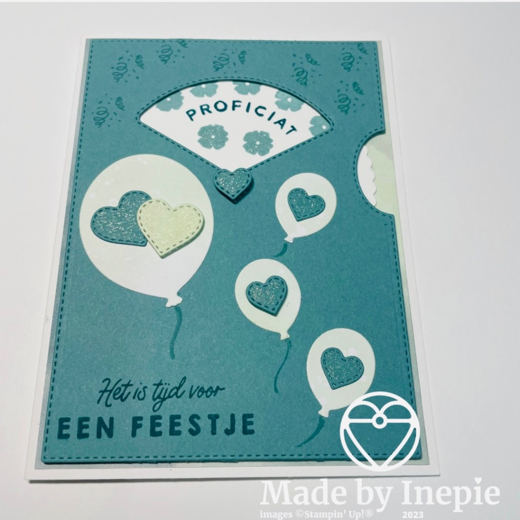 Aan de binnenkant heb ik nog twee ballonnen gestempeld en de tekst Hartelijk gefeliciteerd.
