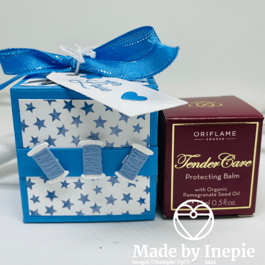 Dit model heb ik van Pootles. Het is een oudje van 5 jaar geleden maar ik wilde iets kleins maken waarin ik een wonderpotje van Oriflame kon doen. Deze potjes zijn ideaal voor schrale lippen, droge plekjes en muggenbulten. Dus het ideale cadeautje.