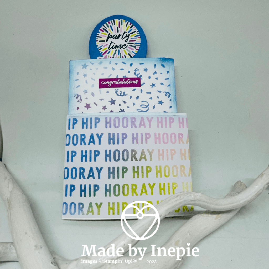 Omdat ik het zo’n leuk model vond en al de producten nog op mijn bureau lagen heb ik nog zo’n kaartje als gisteren gemaakt. Voor de voorkant hetzelfde kaartje en ook de ballon is hetzelfde maar andere sticker erop.