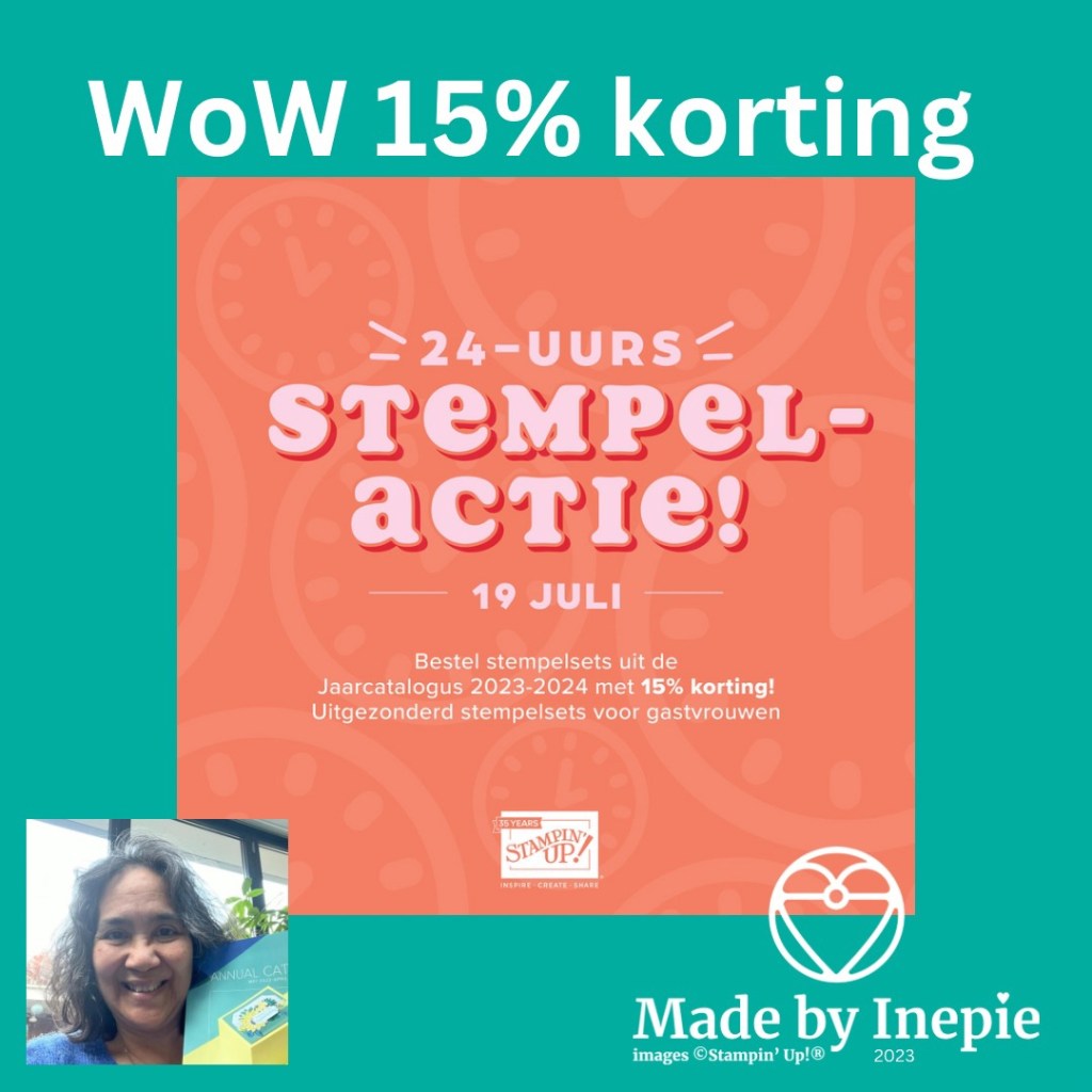 Morgen is er dus de 24 uurs stempelactie. Ik heb mijn verlanglijstje al klaar en jullie? Geef het snel door of plaats zelf de bestelling in mijn onlineshop. Mocht je een bundel willen bestellen ben je goedkoper uit om de bundel prijs te nemen ipv de stempelset met 15% korting en de stansen of pons voor de volle prijs. Bundel korting is namelijk 10% van het totaalbedrag. Maar er zijn diverse stempelsets die geen stansen of bijpassende pons hebben en dan is die 15% mooi meegenomen. En vergeet niet dat je voor iedere €60,00 een bonuscoupon krijgt ter waarde van €6,00. Deze kun je dan in de maand augustus inleveren als korting op je bestelling.
