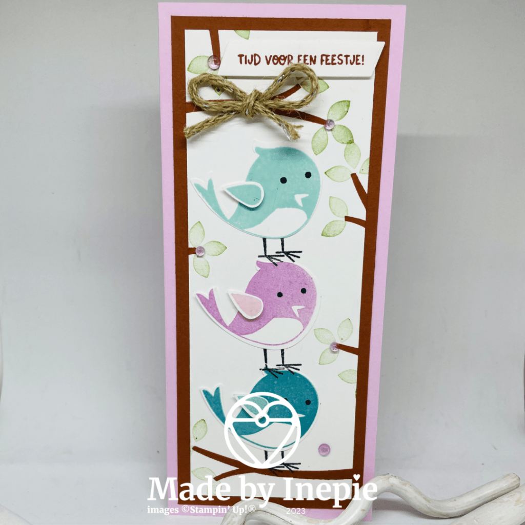 Zeg nou zelf dit is toch een mega schattig kaartje. Ik vind hem zo leuk geworden. De kleuren, de compositie! Alles klopt. Het kan als verjaardags kaart, felicitatie kaart maar ook als geboortekaartje. Ik vind het altijd fijn als je met 1 kaartje meerdere kanten op kan.