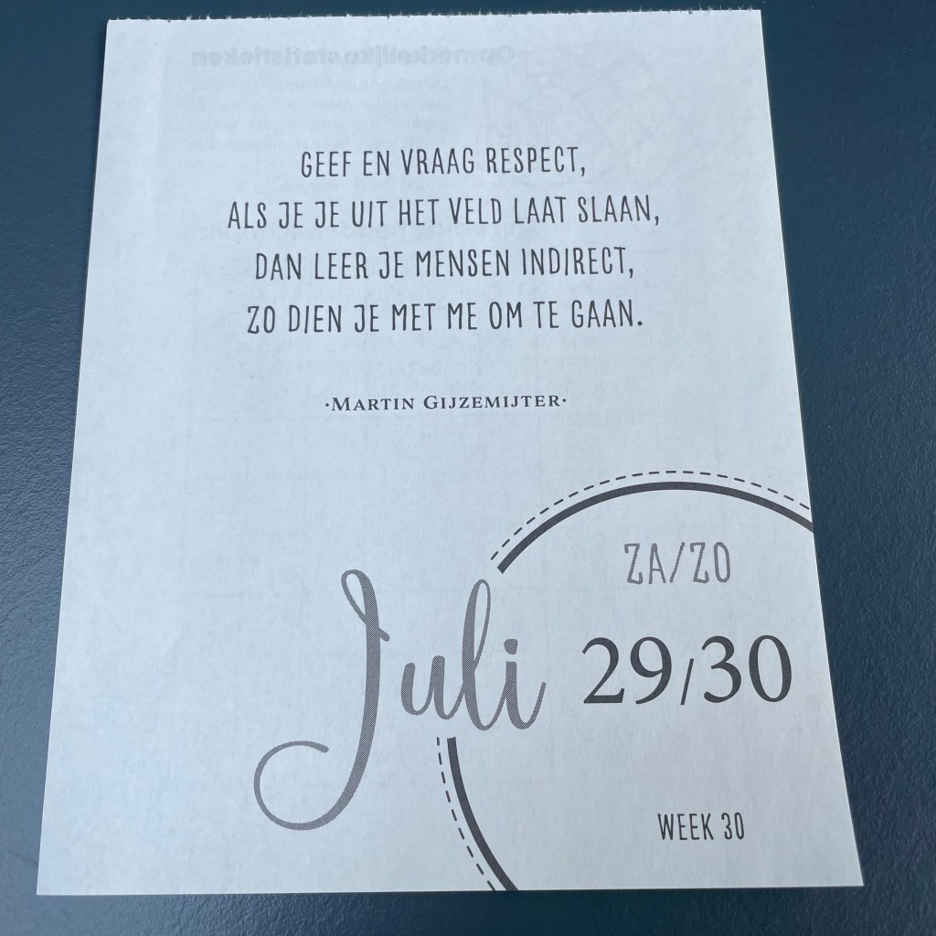 Deze mooie quote komt van mijn scheurkalender van Martin Gijzemijter. Die voor volgend jaar heb ik al gereserveerd. Wil je deze kalender ook dan moet je hem snel reserveren want als hij 1000 reservaties heeft besteld hij een tweede druk. De eerste was zo uitverkocht. Hij zit op bijna 800 dus grijp je kans.