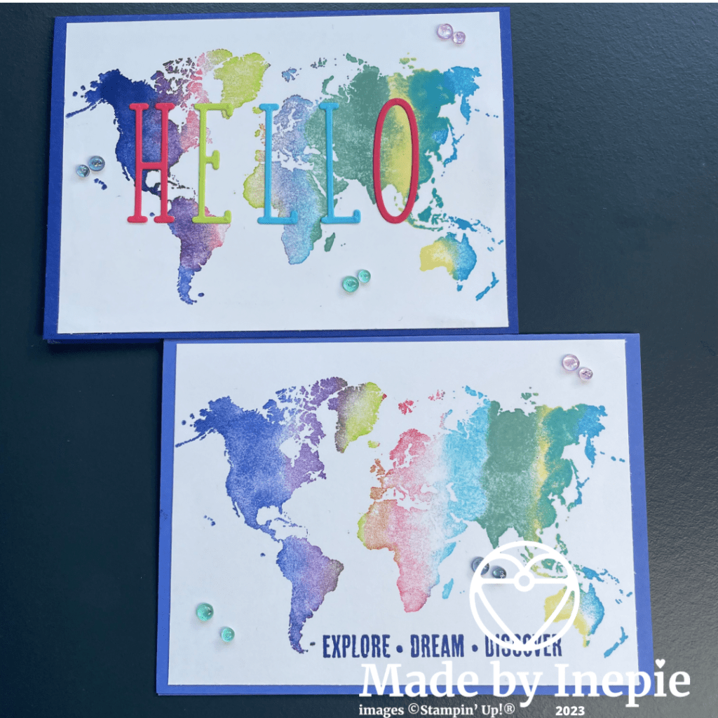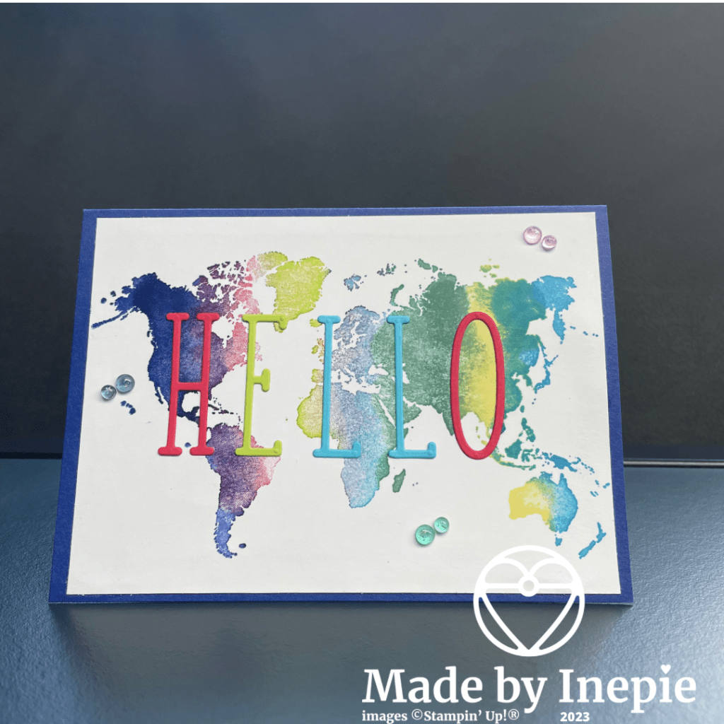 En kijk een heel ander kaartje! Superleuk toch? Je kunt er iedere tekst op maken: de naam van de ontvanger, het woord Travel of Reis. Wat jij wilt. Ik heb gekozen voor Hello, maar Hallo had ook gekund.
