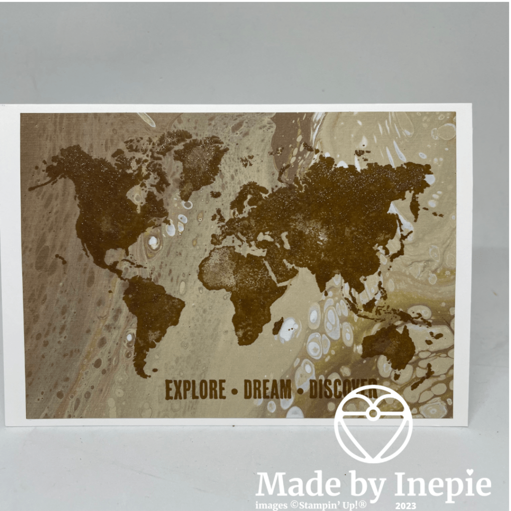 Vandaag weer een kaartje gemaakt met een halve basiskaart uit de Boho Beach Kit. Deze keer de stempel uit de Watercolor World set in mijn Stamparatus gedaan. Met de nieuwe kleur Pecan Pie de stempel op de mat van 14 cm bij 10 cm gestempeld.