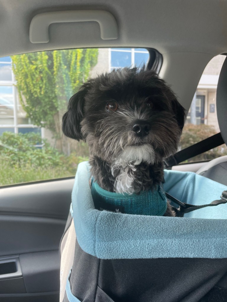 Morgen komt Koda weer. Wat geniet ik van dit kleine vriendje. Vandaag bracht ik hem met de auto naat Mandy en dan zit hij zo mooi naast me.