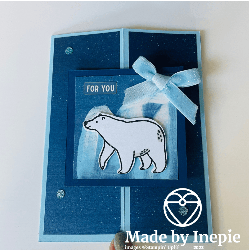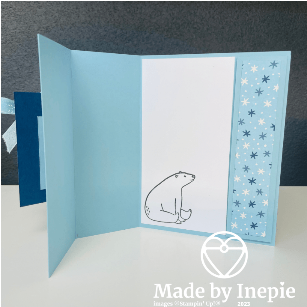 Aan de binnenkant heb ik nog een ijsbeer gestempeld. En kun je een tekst schrijven of stempelen.