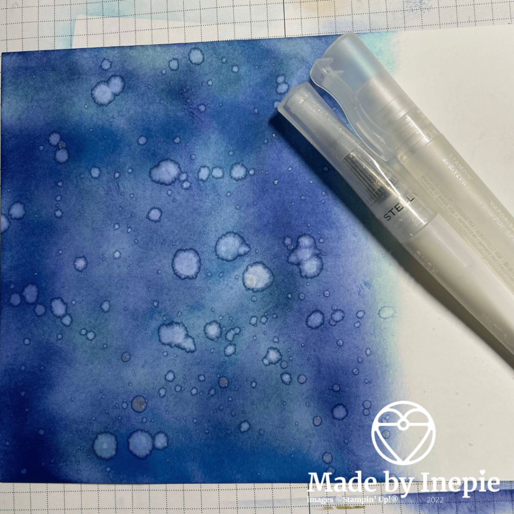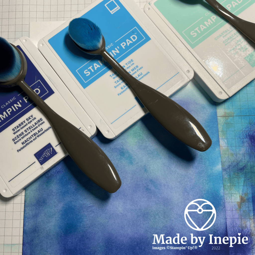 Ik had laatst lekker zitten kliederen met inkt. Heerlijk vind ik dat. Met mijn Blending Brushes lekker kleuren mengen: Starry Sky, Tahitian Tide en Coastal Cabana.