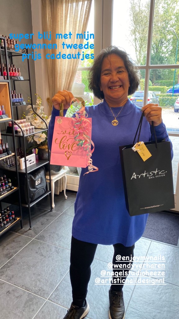 Vandaag ging ik naar mijn nagel styliste Wendy Verharen van Enjoy My Nails in Heeze. Daar overhandigde ze mij eerst mijn gewonnen prijzen! Super leuk! Echt verwend geworden: