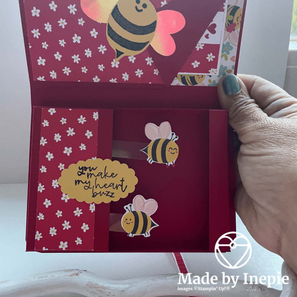 Heel leuk gedaan met de boxcard. Zo zie je door een foutje heb je opeens een heel ander effect en hij blijft leuk en de verrassing kan er zo ook in. 😊