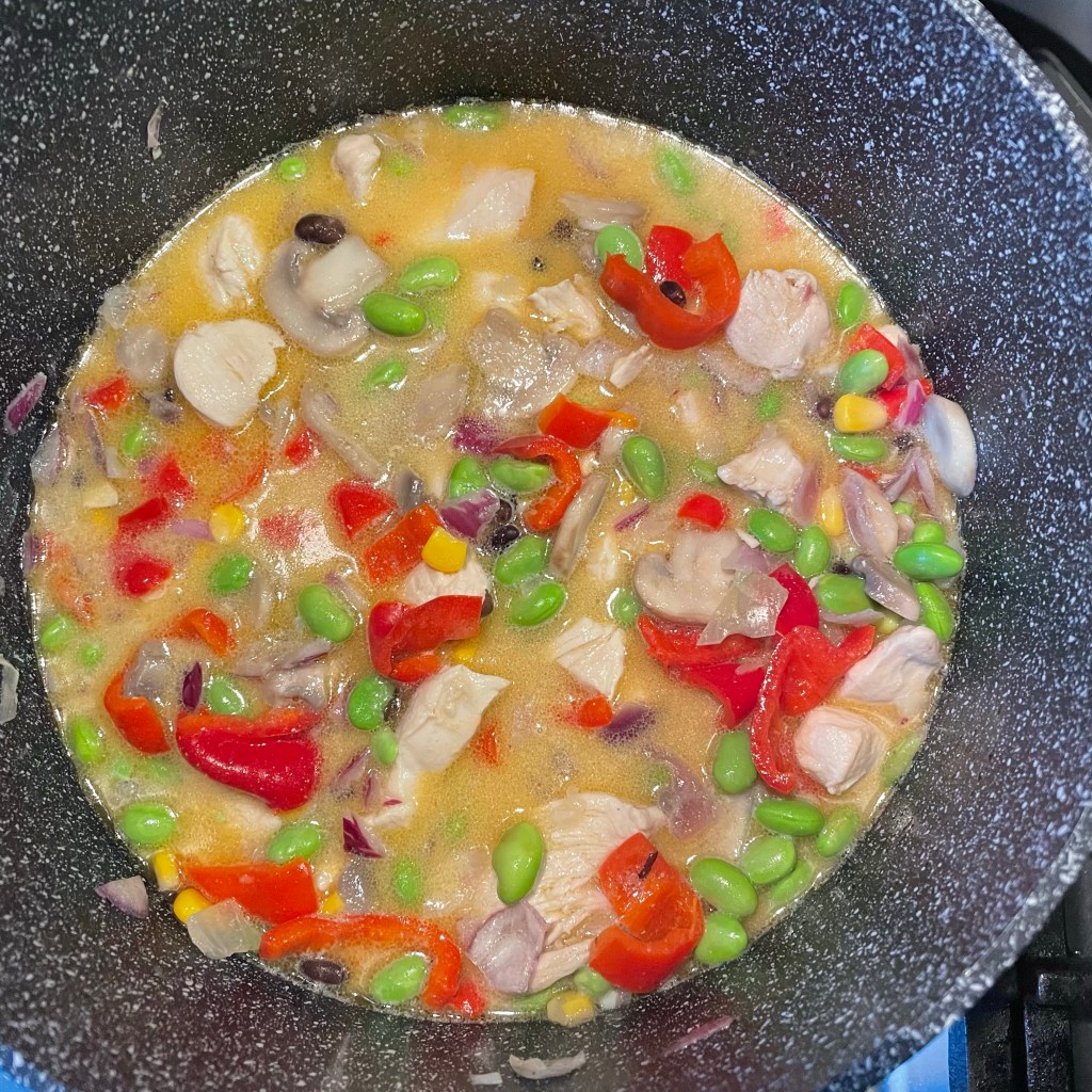 Een hele late blog want we zitten nu pas op de bank. Aggie en Geert zijn weg en de vaatwasser draait al. De restjes zijn in bakjes gedaan: daar kunnen we morgen nog van smullen. Zoals jullie misschien wel weten kijken we heel vaak de F1 races met Aggie en Geert. De ene keer bij hun en de andere keer bij ons. En wie ermee begonnen is weet ik niet meer maar tegenwoordig passen we het eten aan, aan het land waar de race verreden wordt. Vorige week zouden ze bij ons komen eten en had ik Mexicaanse recepten uitgezocht. Helaas waren ze ziek en werd het uitgesteld naar vandaag. Braziliaanse recepten vinden viel erg tegen. Gelukkig toch wat gevonden en vanochtend zijn we aan het koken gegaan. Als voorgerecht had ik Pittige Braziliaanse Mais soep. Erg lekker! Hier zit het nog in de pan maar in de soepkom zat er nog een babymais bij en bieslook en peterselie.