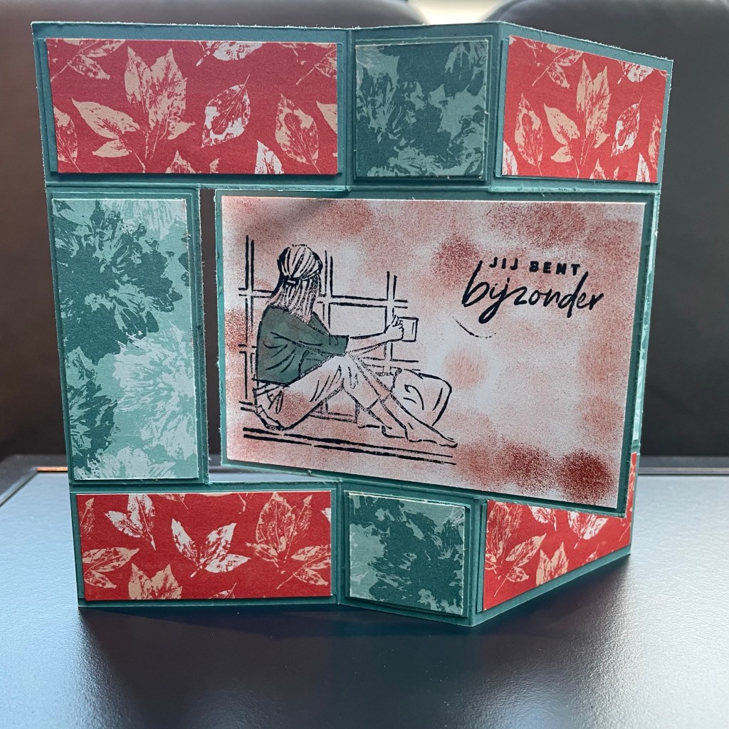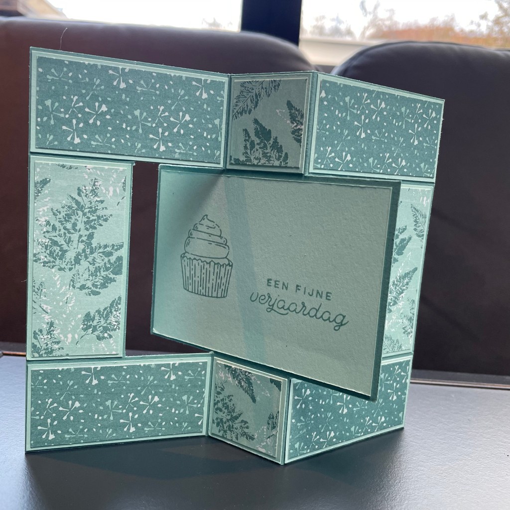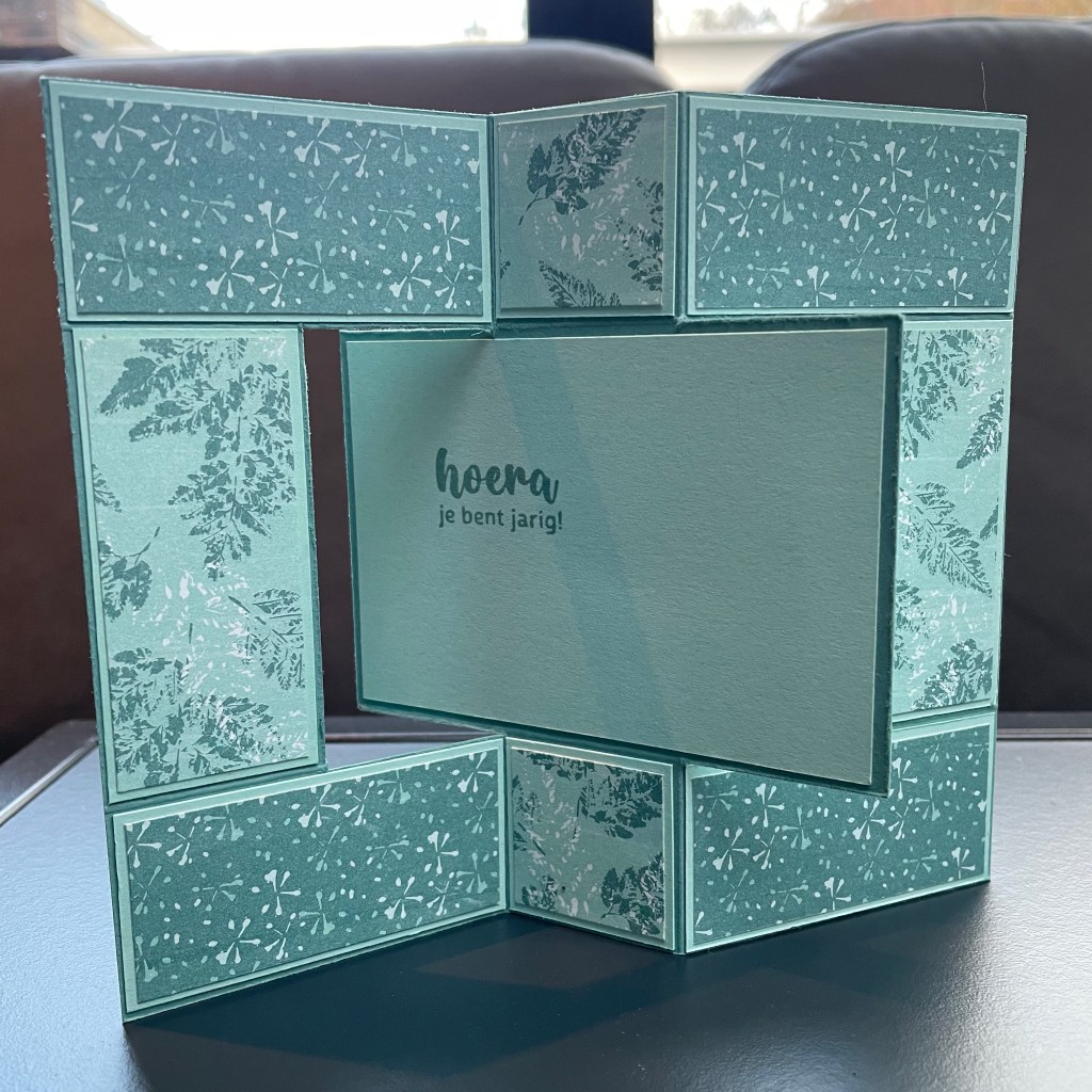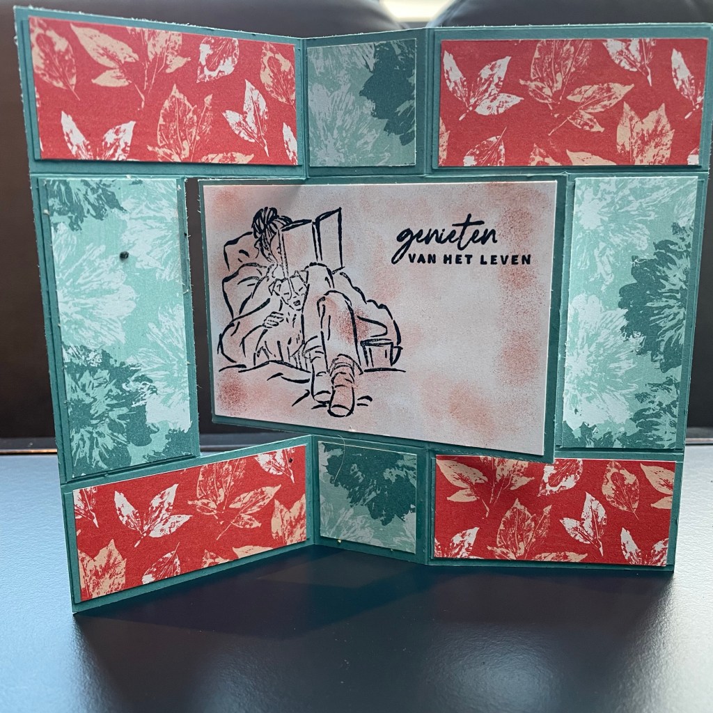 Vandaag was het weer mijn maandelijkse Koffie en Kaart middag. Helaas moesten twee dames afzeggen maar dat mocht de pret niet drukken. De 3 dames hebben hard gewerkt, en prachtige kaarten gemaakt. Ik had de teamswap kaart van vorige maand als voorbeeld kaart genomen.