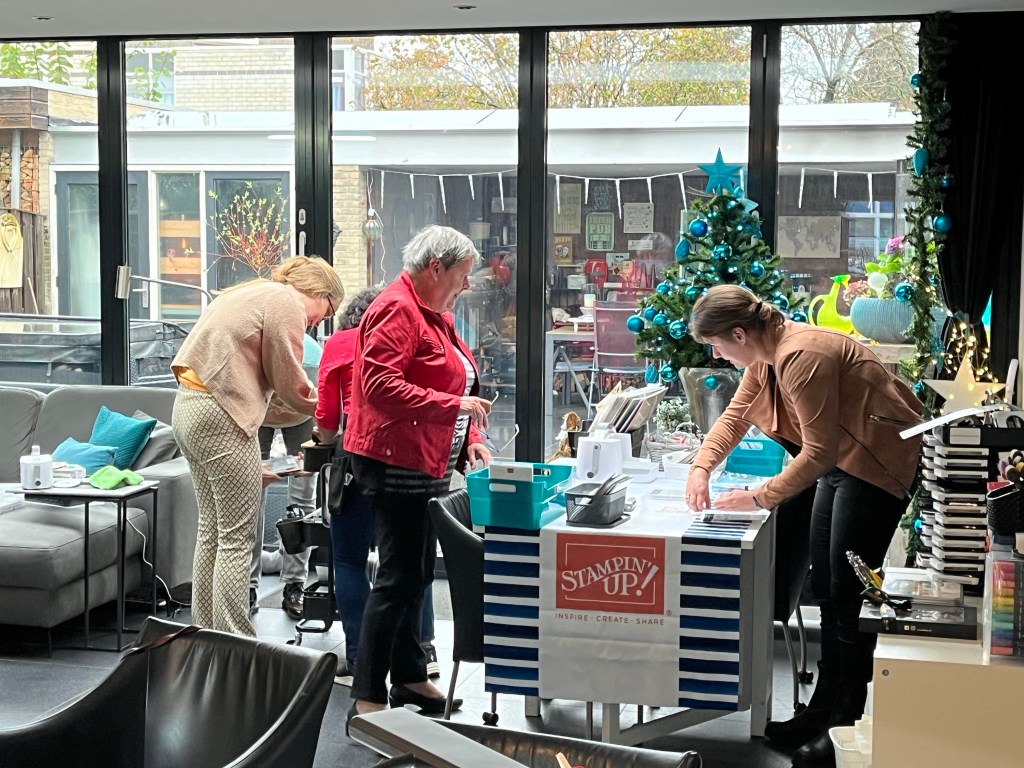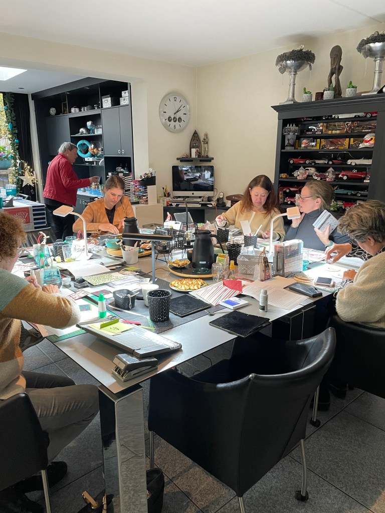 We hadden nog een moeder en dochter combinatie. Astrid en Celine hadden zich vier jaar geleden ingeschreven voor mijn nieuwsbrief en wilden naar mijn workshops komen maar Corona kwam er natuurlijk tussen of de datums kwamen hun niet uit. Nu dus eindelijk wel en ook zij hadden het prima naar hun zin en gingen naar huis met mooie kaarten.