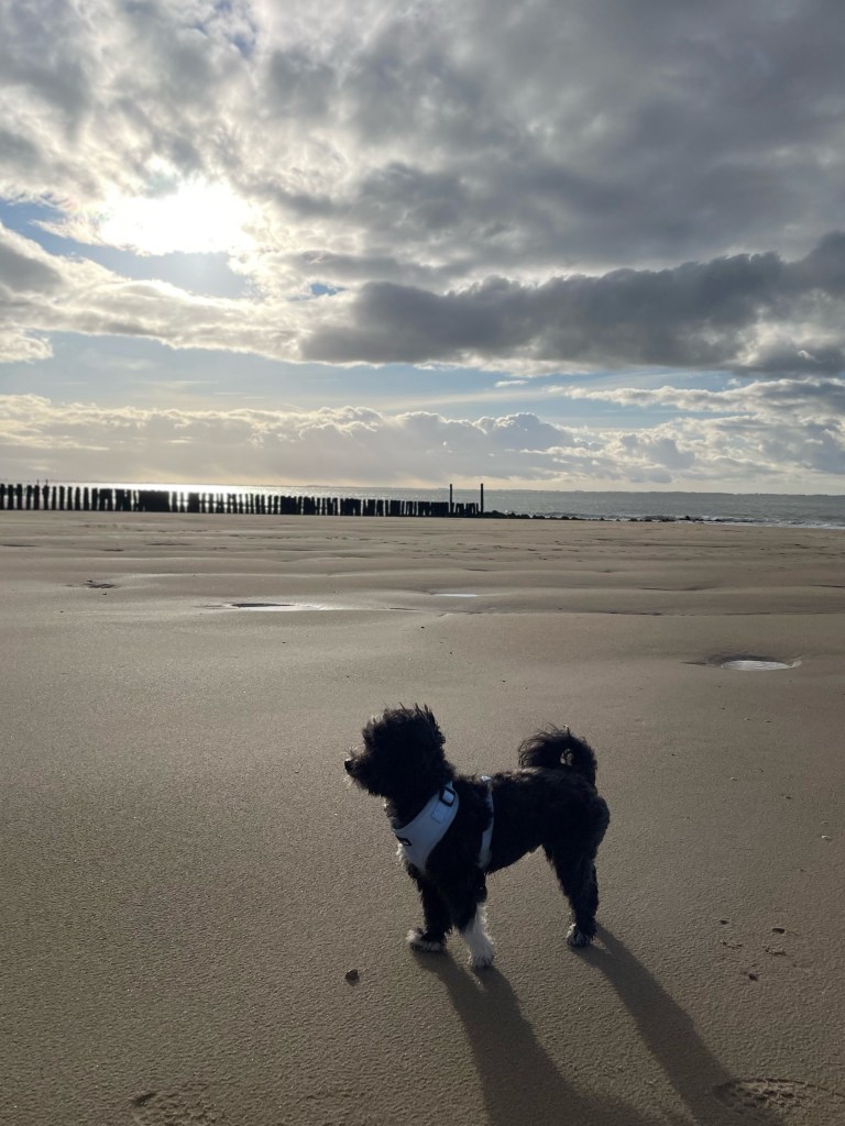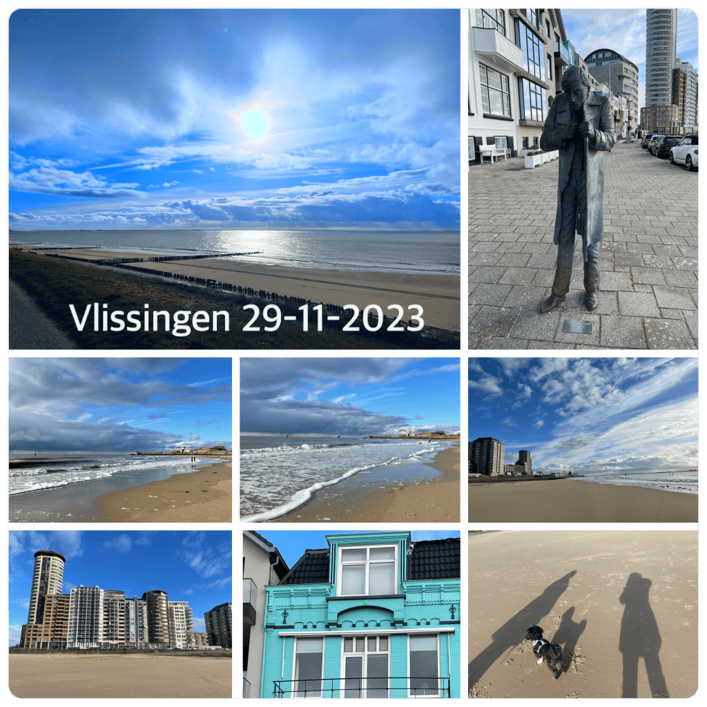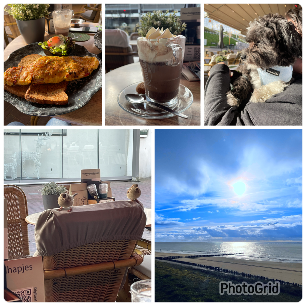 Gisterenmiddag onverwachts naar Burgh Haamstede gegaan . We hadden al het plan om woensdag naar het strand te gaan Mandy en ik maar de weersvoorspellingen waren slecht: sneeuw en hagel en regen. Ik natuurlijk aan mijn overleden man gevraagd om zijn zonnetje. Maandag was natuurlijk vreselijk nat maar dinsdag was prachtig weer. Dus toen Mandy s’middags Koda kwam halen zei ik: papa is een dag te vroeg. Misschien moeten we dadelijk al gaan. Ik moest eerst mijn nagels laten doen maar daarna was ik vrij. Normaal gaan we altijd op dinsdag naar ons mam maar Willem moest in Rotterdam zijn twee dagen en sliep dus in Rotterdam en de man van Mandy zit voor een weekje in India dus we konden weg. In de tijd dat ik mijn nagels liet doen vond Mandy een mooie aanbieding en konden we gaan.
