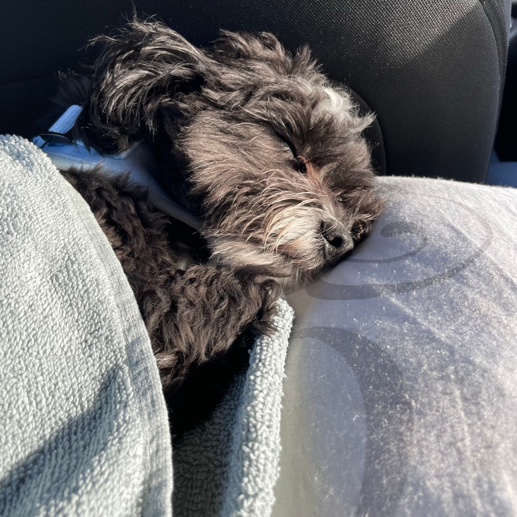 Kortom: enorm genoten! Koda was zo moe van al dat rennen dat hij bijna de hele terugreis op mijn schoot heeft geslapen: