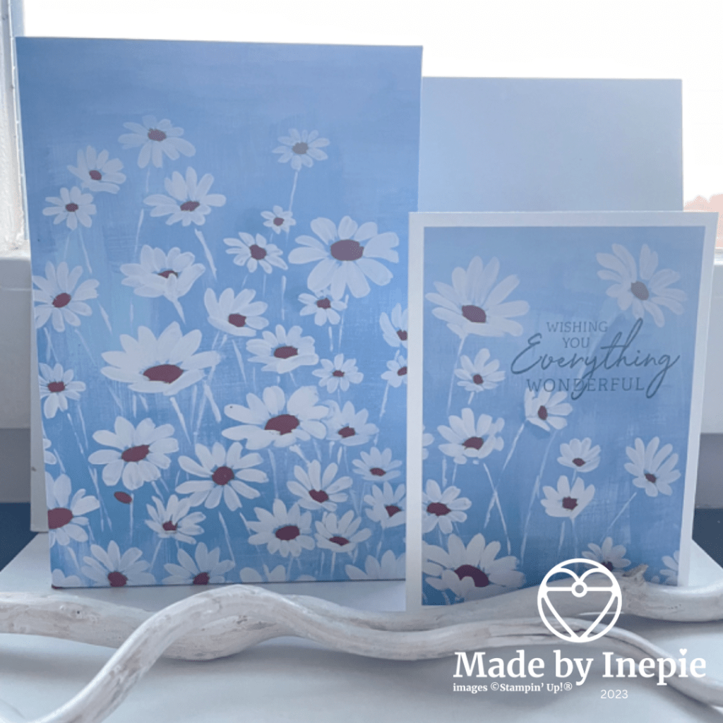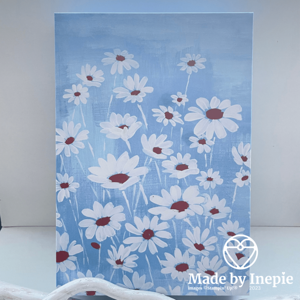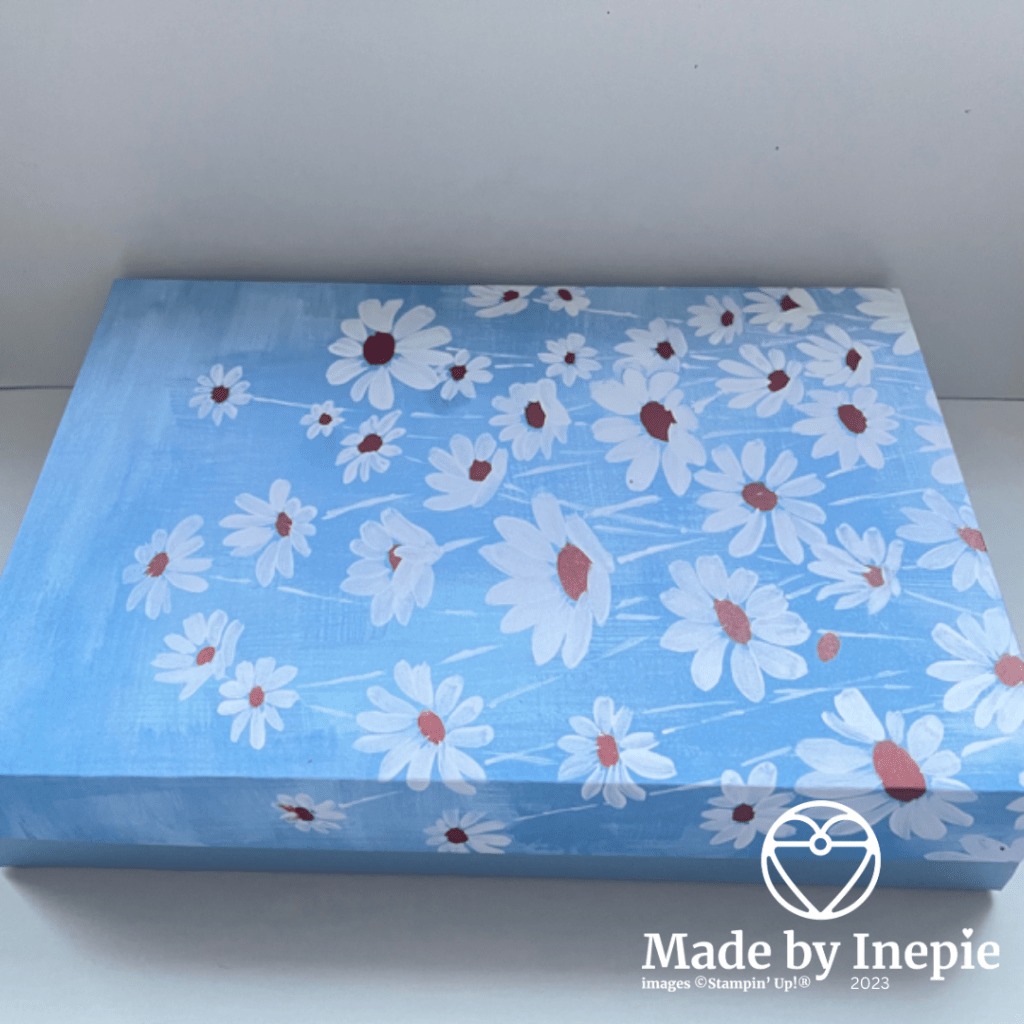 Het lijkt wel een schilderij maar het is een op maat gemaakt doosje. Wat hebben wij toch mooi Dsp. Dit vel komt uit het Fresh as a Daisy Dsp pak (161289). En dit vel is echt een favoriet van mij. Ik maakte er het deksel van en hield nog een mooi stuk over voor een kaart. Die zag je hier gisteren voorbij komen