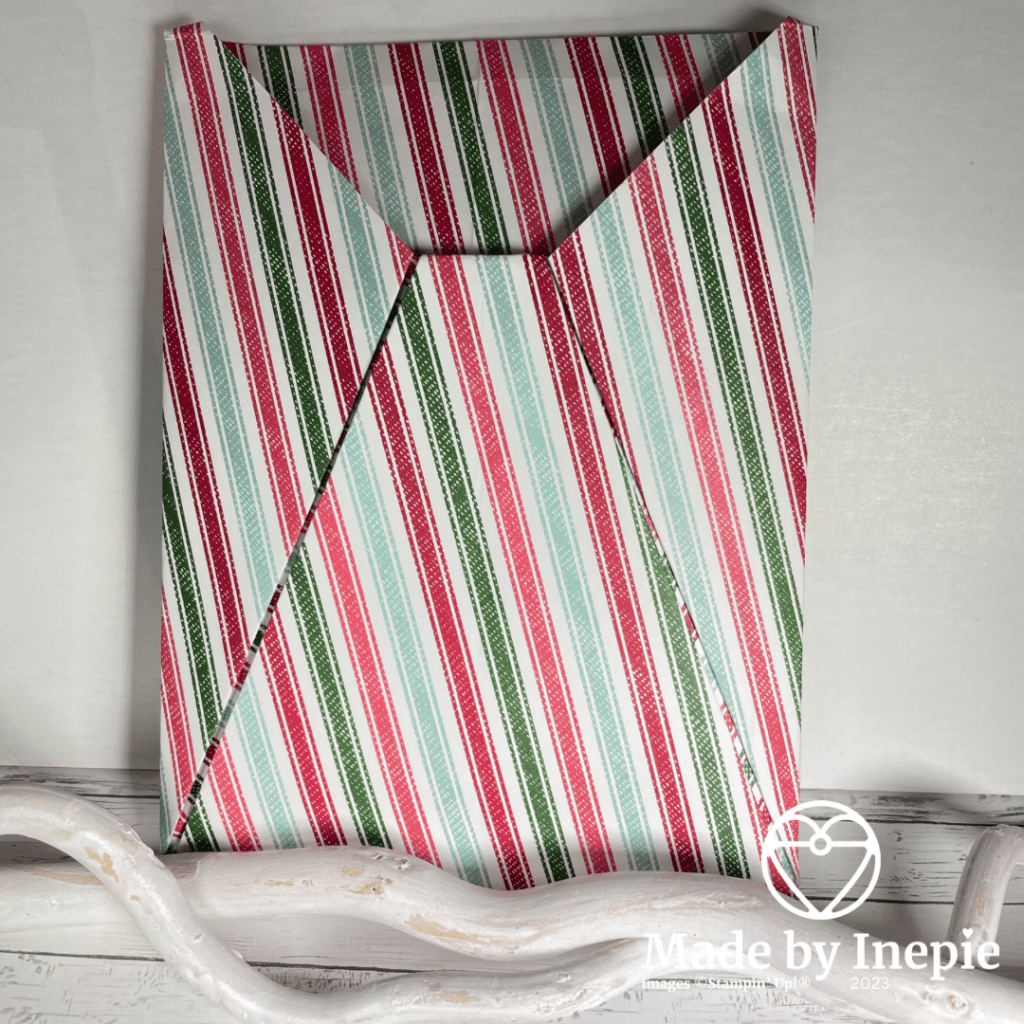 Ook dit is eigenlijk een One Sheet Wonder want je maakt het ook can 1 vel Dsp maar nu het 12” x 12 “ vel. Je kunt het ook van bijvoorbeeld een 6” x 6” vel Dsp maken maar dan wordt het een kleiner zakje.