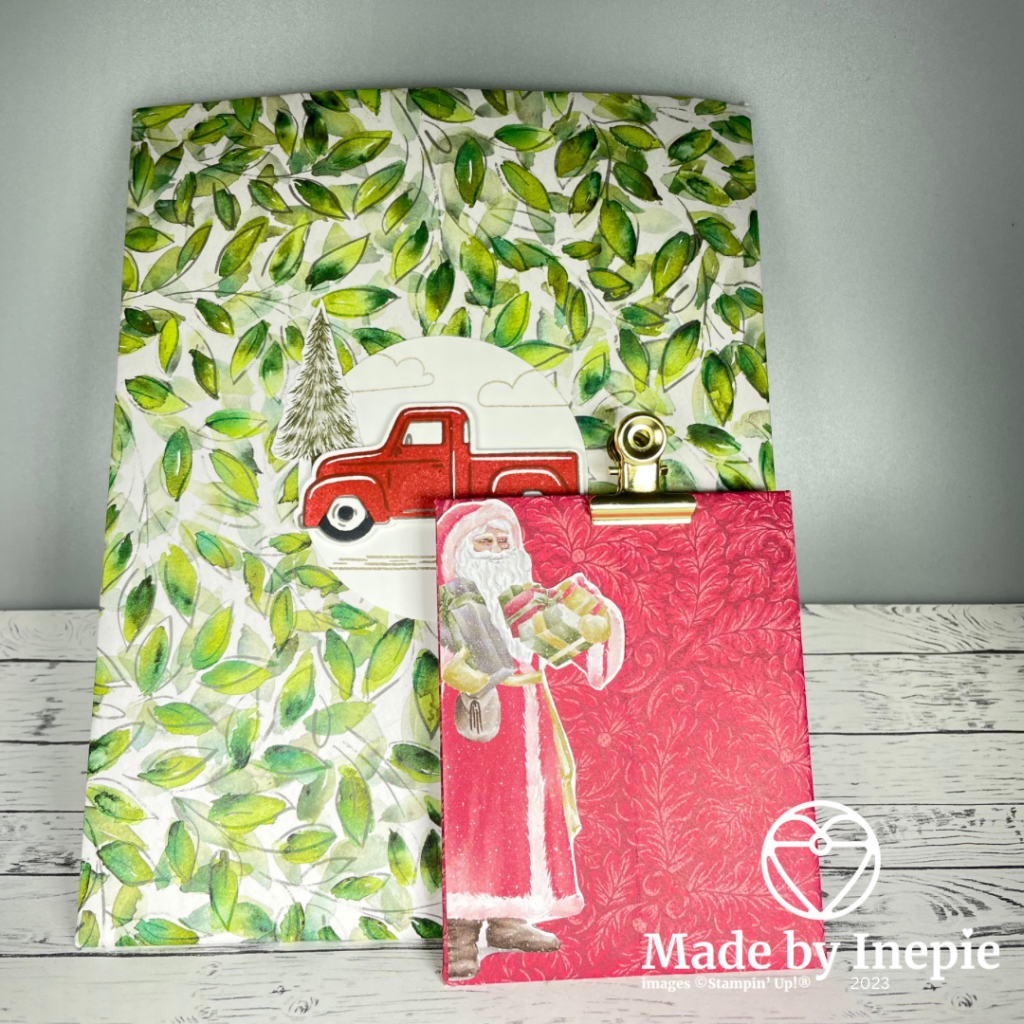 Voor mijn Kerst en Kaart evenementen had ik een leuke One Sheet Wonder gemaakt. Zo kon je uit 1 vel Dsp van 6” x 6”, vier leuke kaarten maken. De dames waren zo enthousiast dat we niet aan de andere projecten toe kwamen. 1 Project wil ik hier delen: dit is het kaartenzakje waar de dames hun vier gemaakte kaarten en enveloppen in konden doen. Dit is maar een enkeling gelukt de rest kreeg de beschrijving mee naar huis.