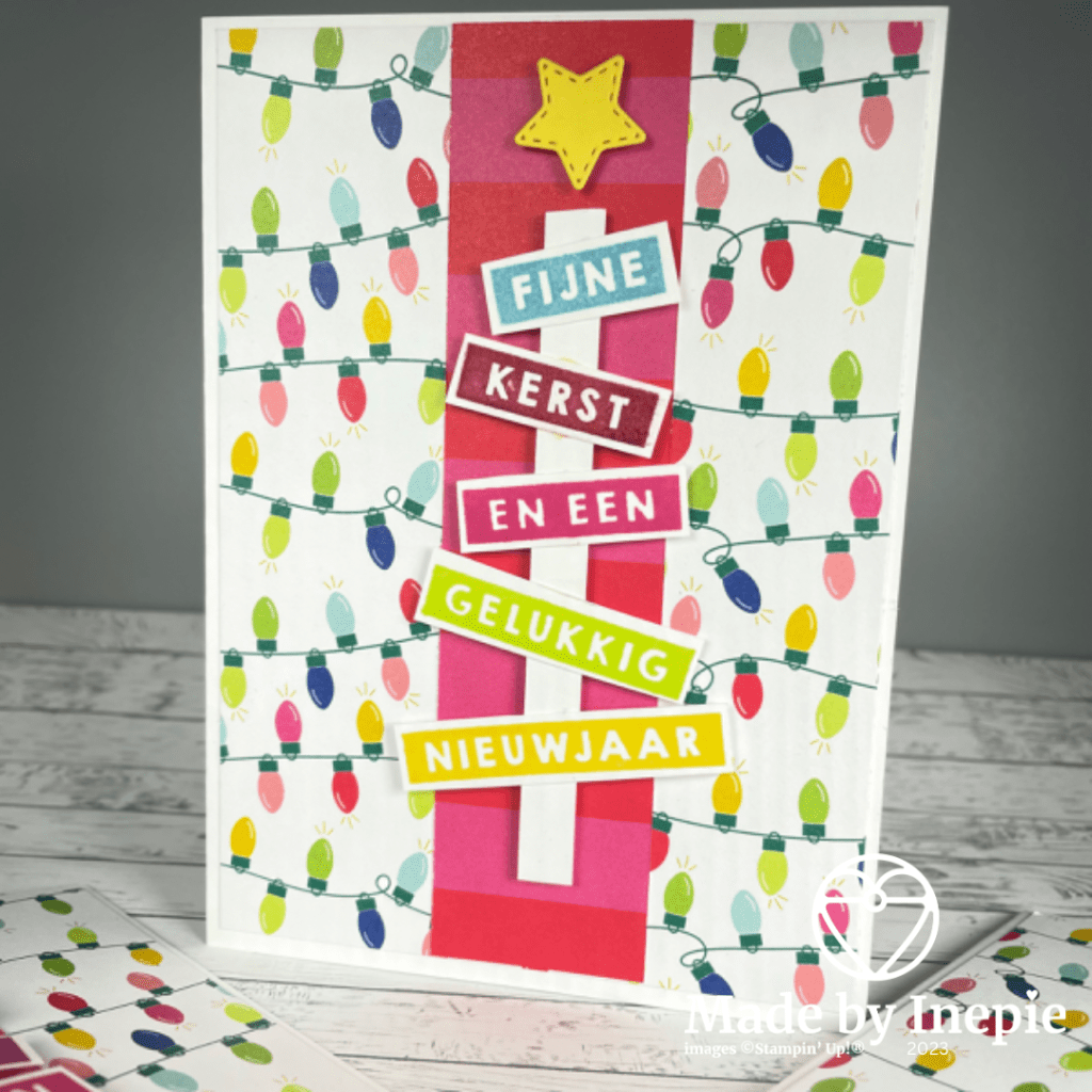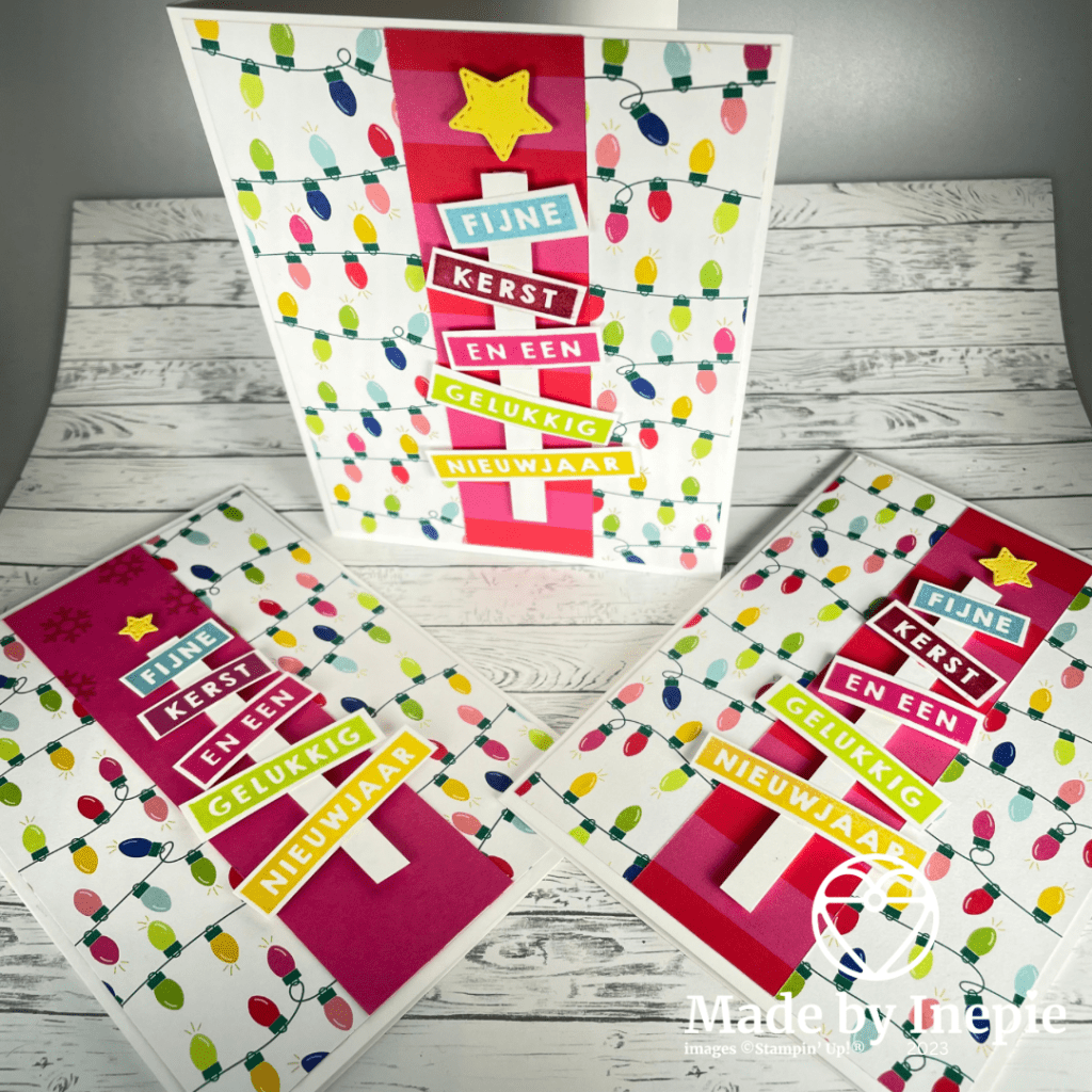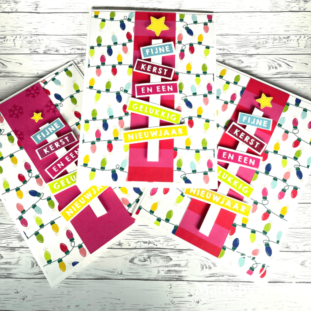 Ik heb er meteen drie gemaakt. Dat is veel makkelijker want juist het ontwerpen van een kaart kost het meeste tijd. Het sterren stansje, stanst meteen 3 sterren in verschillende maten uit: ideaal!